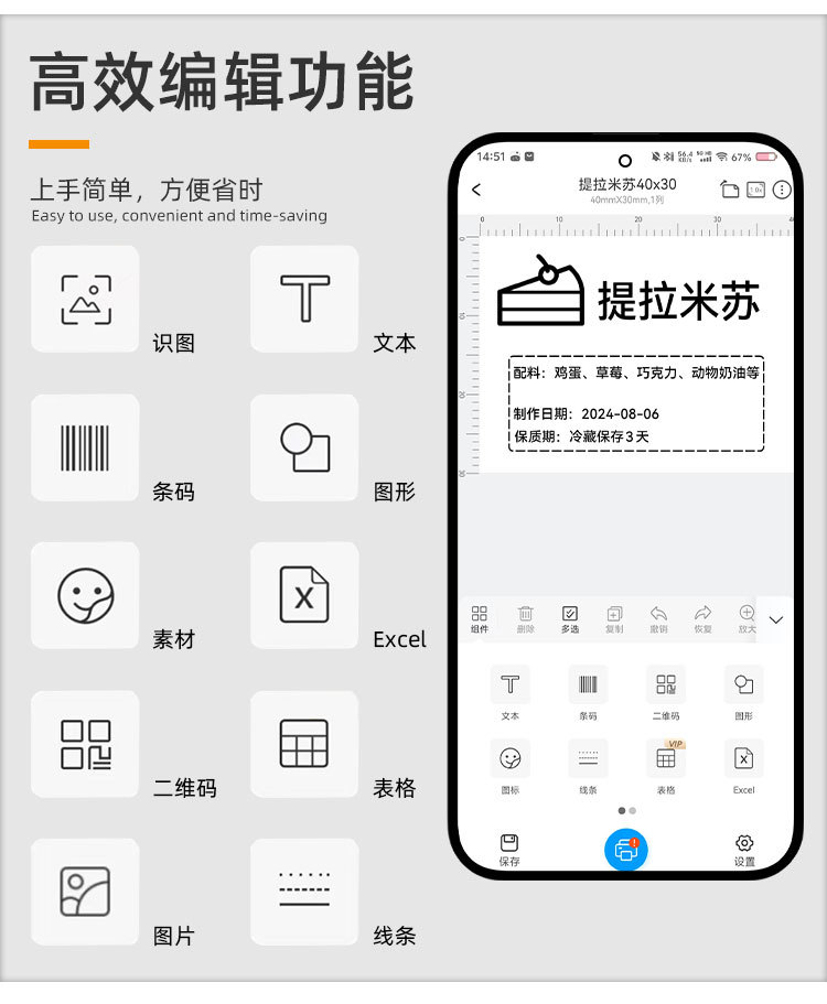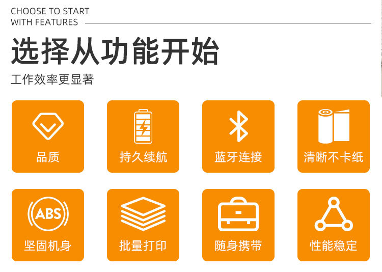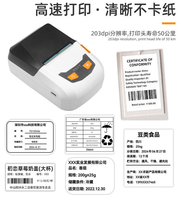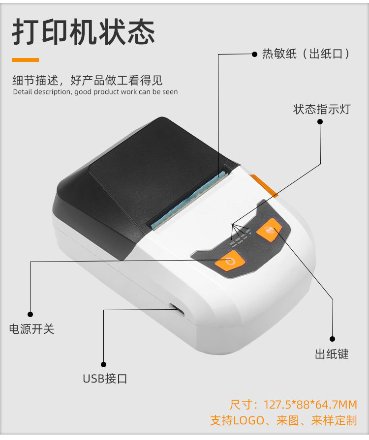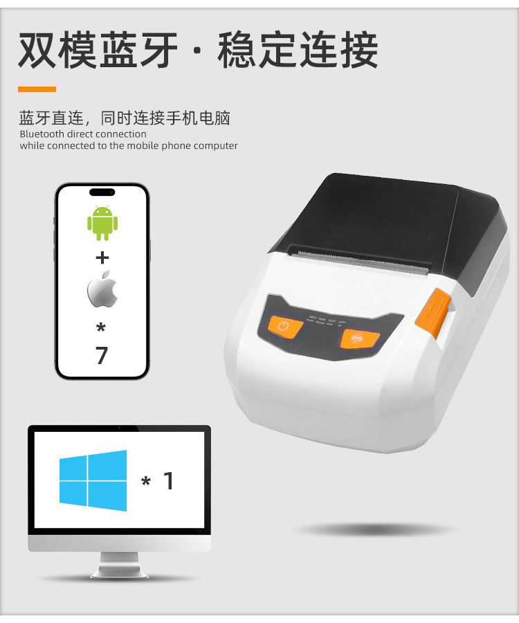 - 支持蓝牙功能,支持Android,iOS和Windows,方便您无线打印设备中的数据