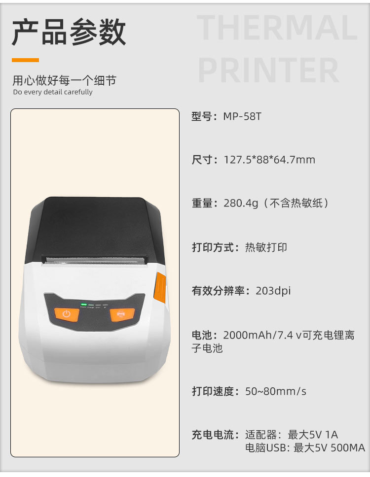 告别传统的点阵式打印机,现在,我们为您提供更多高效便携式打印机!这款MP-58T迷你型热敏蓝牙标签打印机将轻量,卓越的连接性和超长的电池寿命集于一身。手持数据打印使其成功应用于各种领域。打印机可以由可充电电池供电。紧凑的设计可让您随时随地将其放入包中以便轻松使用。