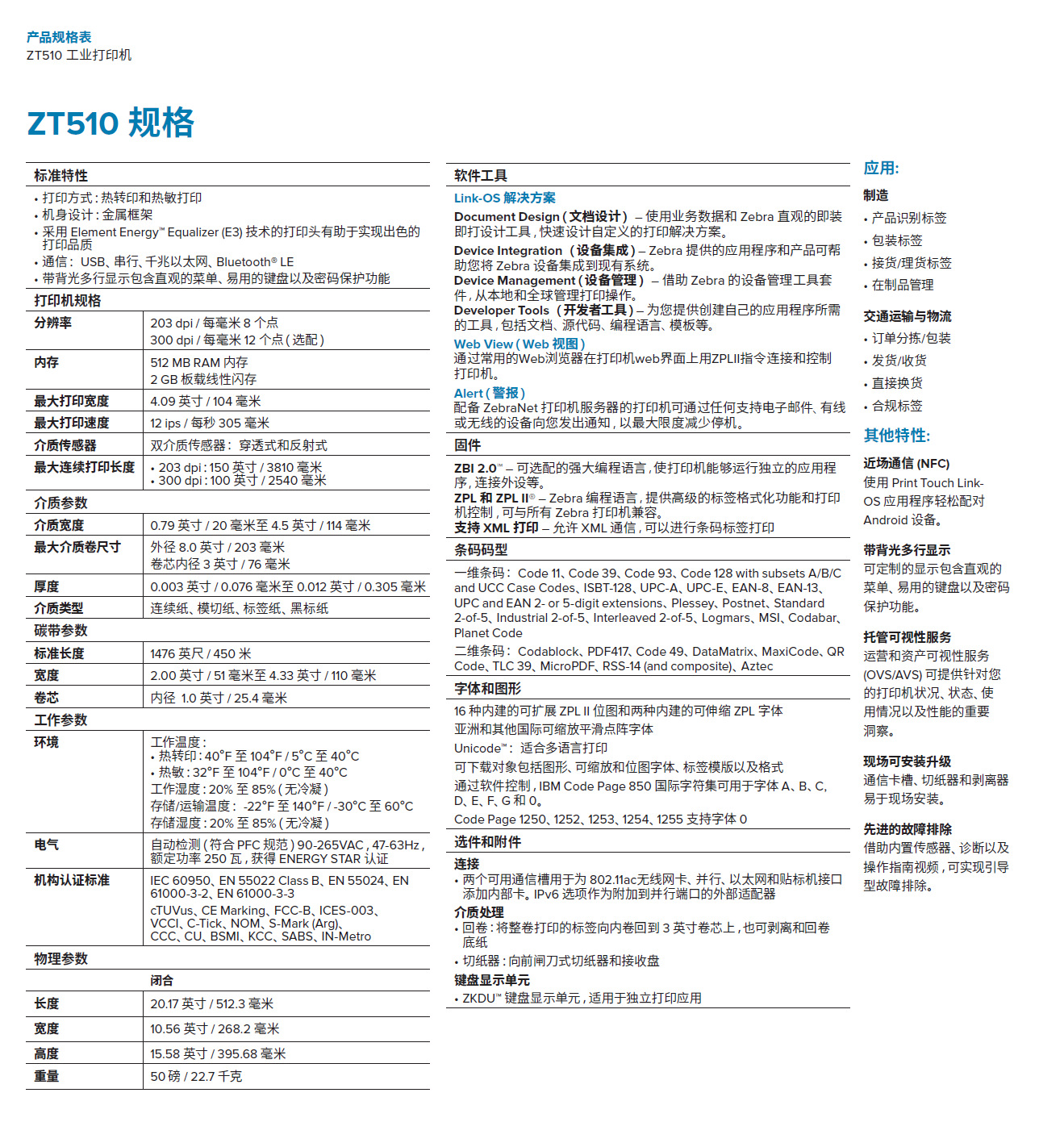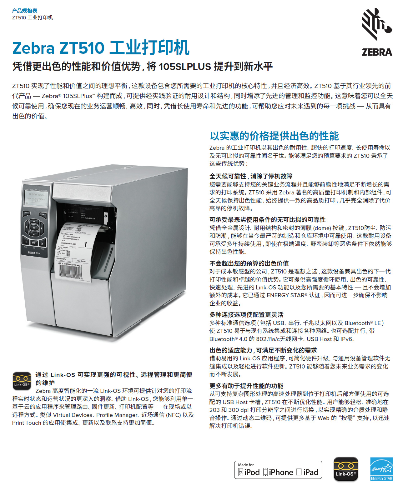 Zebra (ZEBRA) 산업 등급 ZT510 시리즈 바코드 라벨 프린터 ZT510-300DPI 스트립 리와딩