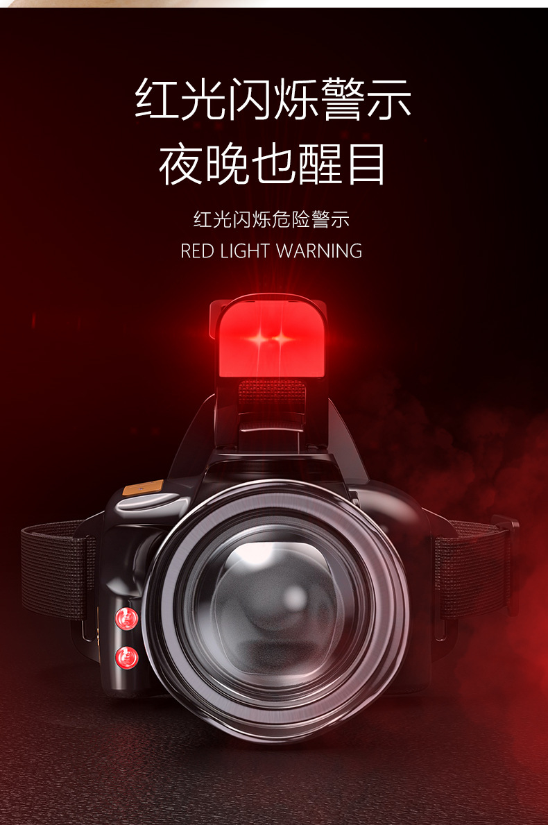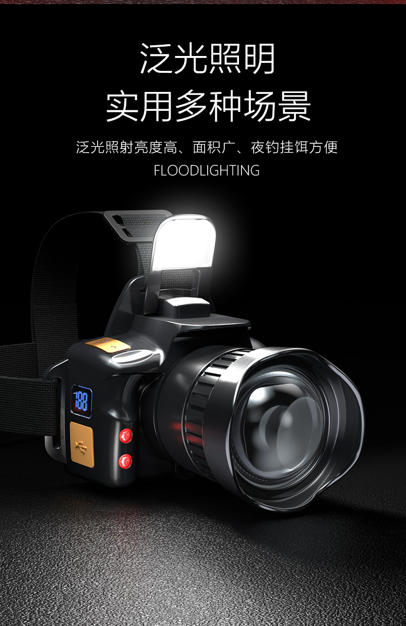 국경을 넘는 야외용 강광 센서 줌 기능 장거리 USB 충전식 긴시간 사용 가능 야간 라이딩, 탐험, 야간 낚시, 작업용 헤드램프