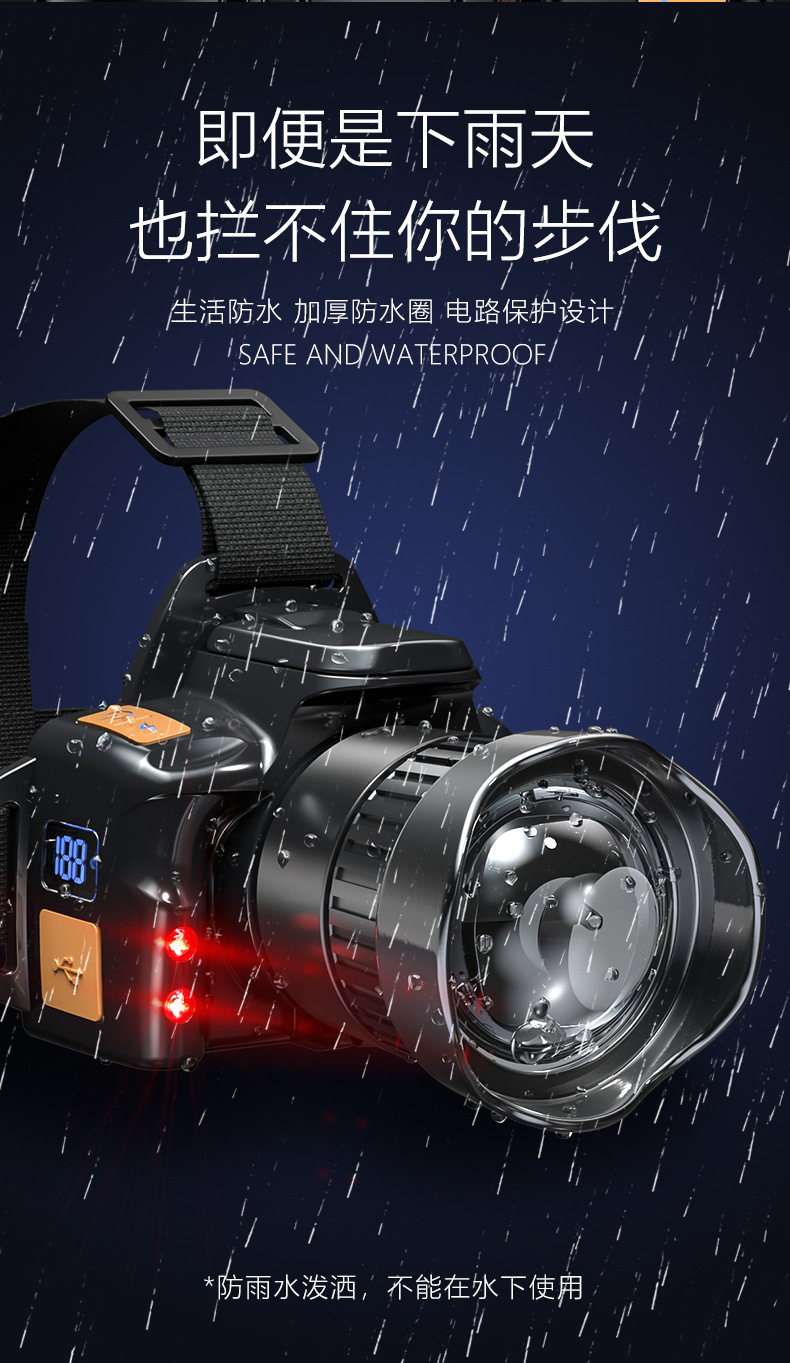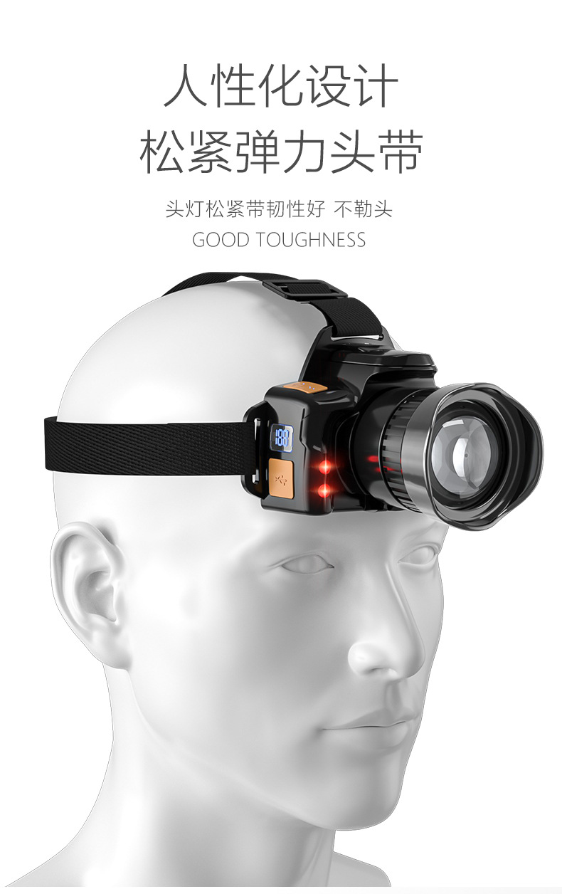 국경을 넘는 야외용 강광 센서 줌 기능 장거리 USB 충전식 긴시간 사용 가능 야간 라이딩, 탐험, 야간 낚시, 작업용 헤드램프스토어 가기