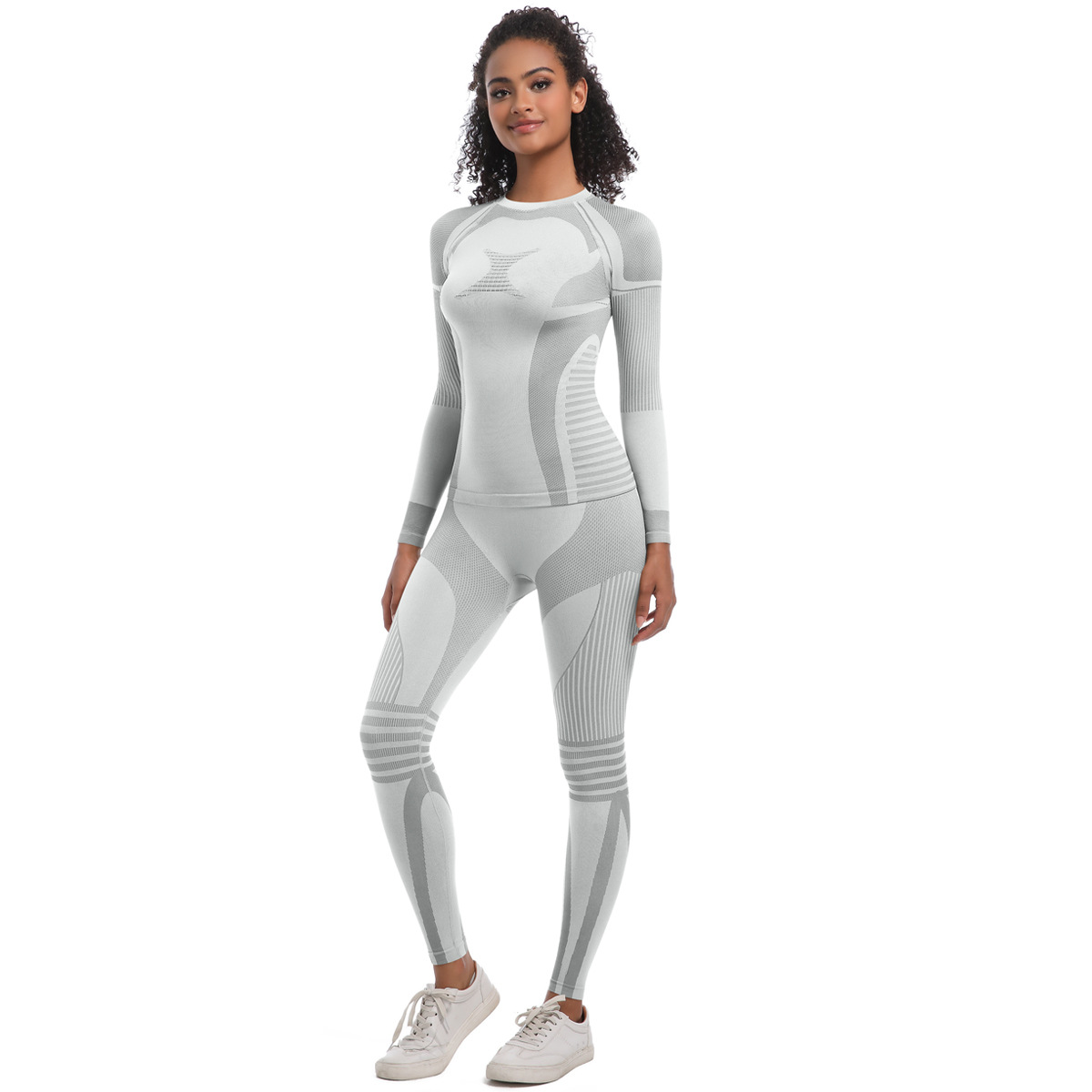크로스-국경 원활한 니트핏 높은 탄성 롱 스키 세트 세트 스포츠 달리기 피트니스 요가 세트 투피스 세트