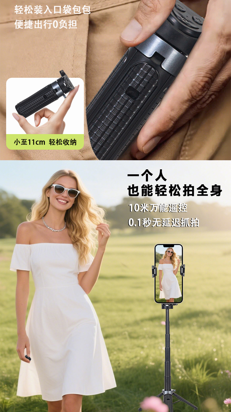 블루투스 셀카봉, 휴대폰 범용, 접이식, 신축성, 라이브 방송, 사진 촬영, 브이로그 도구, 미니 휴대용 스탠드