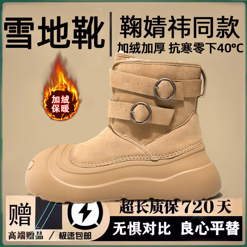 스노우 부츠를 곁들인 Ju Jing yi 2024 새로운 겨울 두꺼운 바닥 미끄럼 기모 따뜻한 영하 40 도 남성용 및 여성면 신발스토어 가기