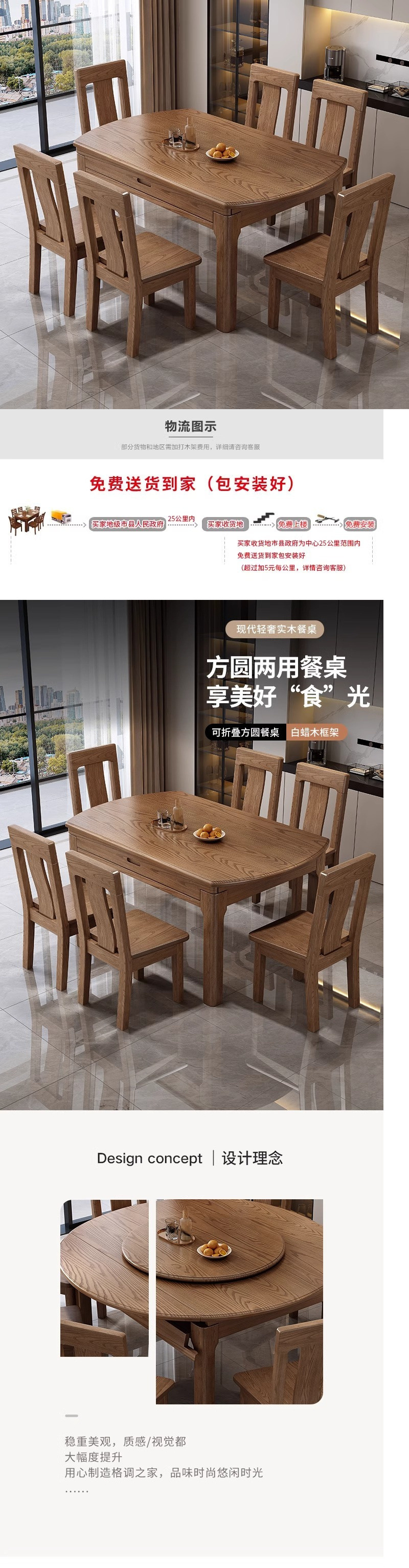 재 모든 단단한 나무 식탁 및 의자 조합 현대 간단한 광장 및 둥근 이중 목적 작은 아파트 접기 및 텔레스코픽 이중 목적 식탁스토어 가기
