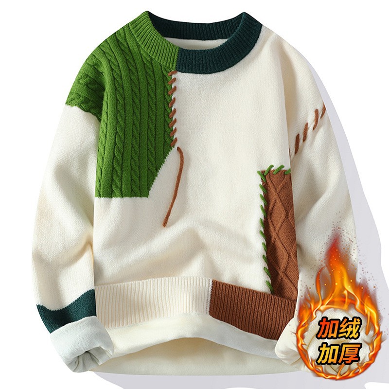 스웨터 남자 기모 두꺼운 한국 스타일 유행 가을 겨울 유행 브랜드 니트 스웨터 주니어 학생베이스 스웨터