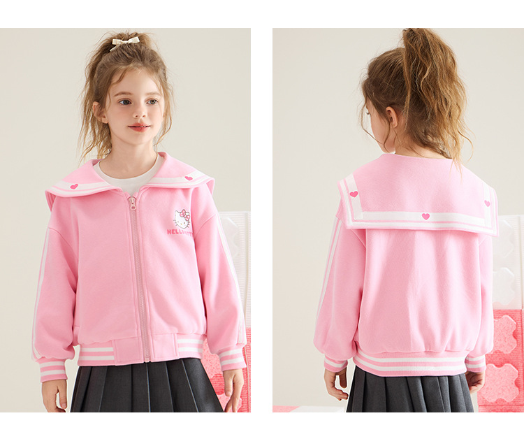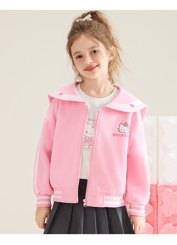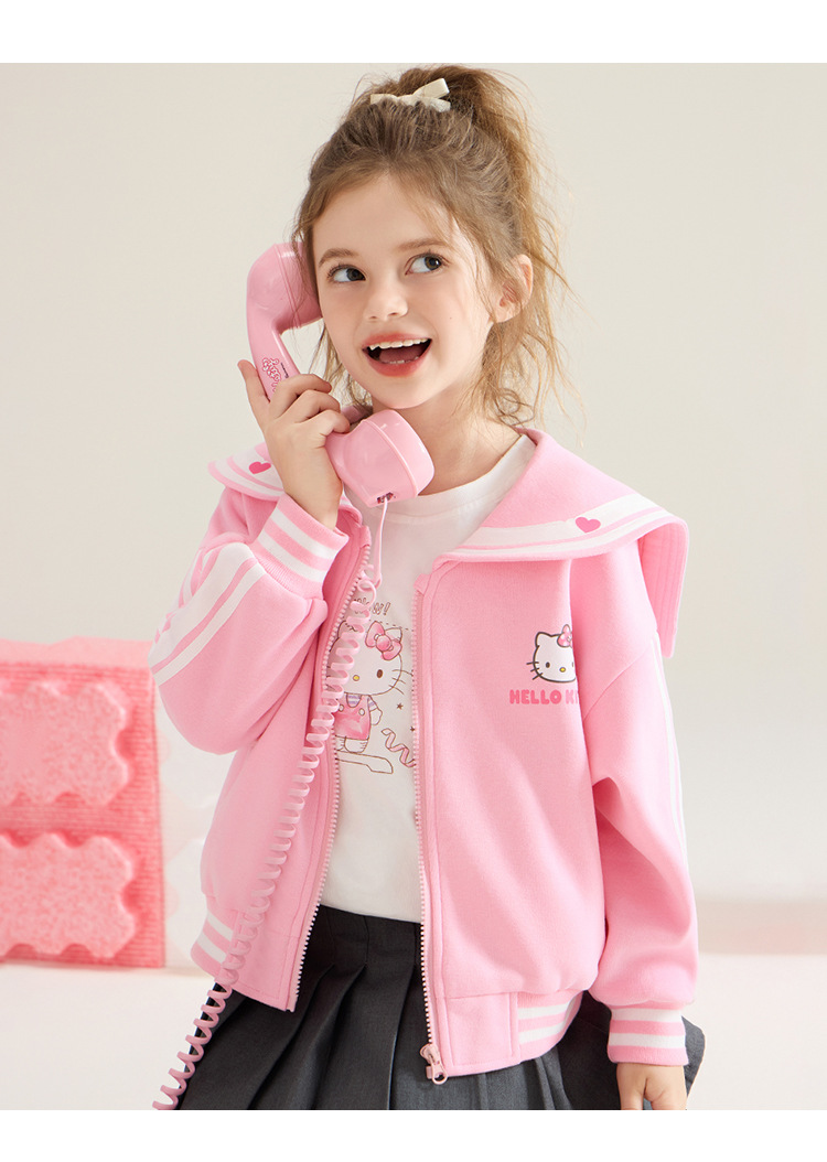 헬로 키티 헬로 키티 소녀 봄과 가을 코트 2024 새로운 어린이 3-12 세 여성 보물 일반 코트