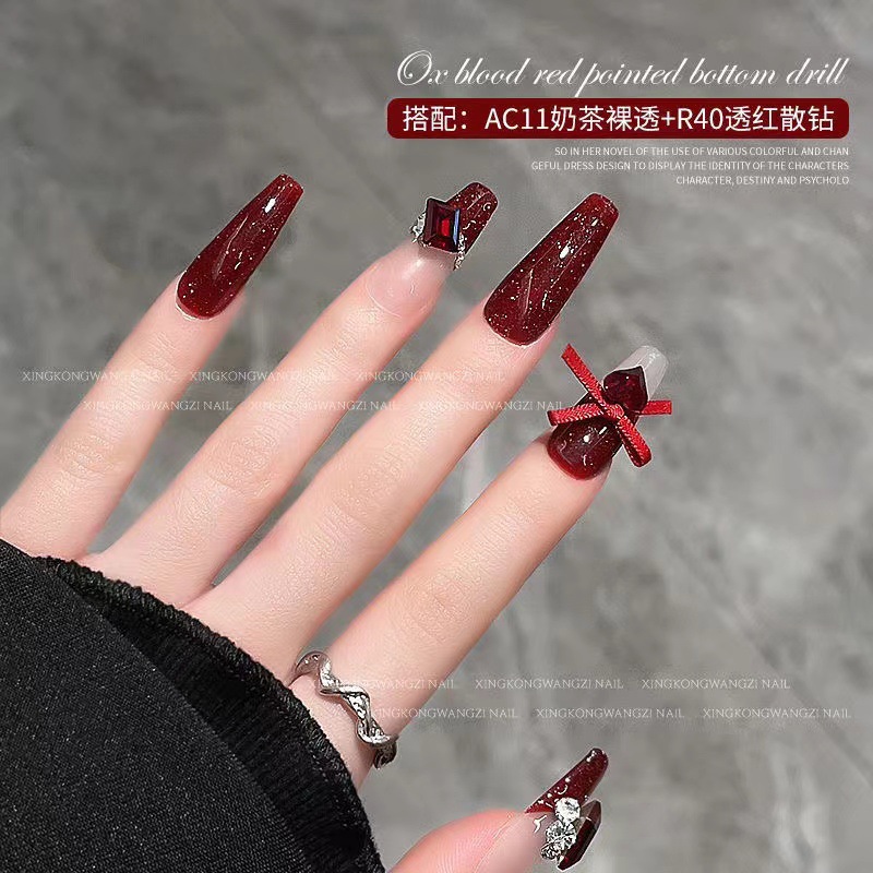 앙골라 붉은 네일 드릴 도매 가을과 겨울 소 붉은 다크 레드 네일 드릴 보석 네일 드릴 K9 전체 배치