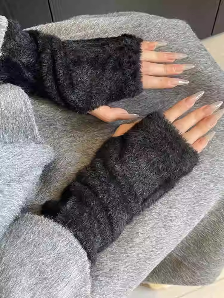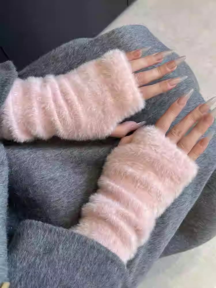 부드러운 왁스 봉제 반 손가락 장갑 여성용 기모 따뜻한 가을과 겨울 소매 귀여운 모조 토끼 모피 일본 긴팔 손가락 장갑