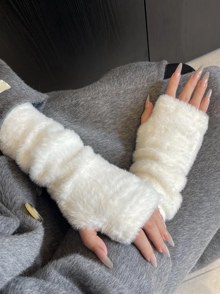 부드러운 왁스 봉제 반 손가락 장갑 여성용 기모 따뜻한 가을과 겨울 소매 귀여운 모조 토끼 모피 일본 긴팔 손가락 장갑스토어 가기