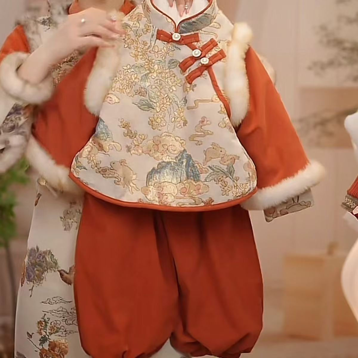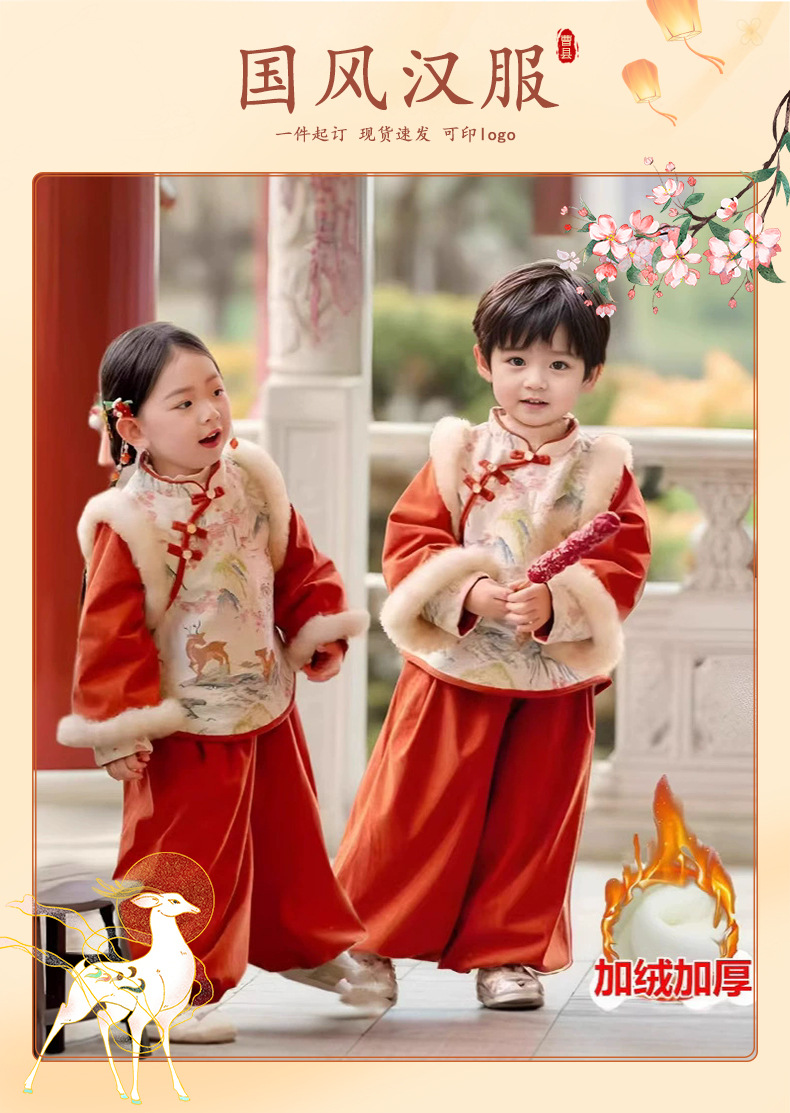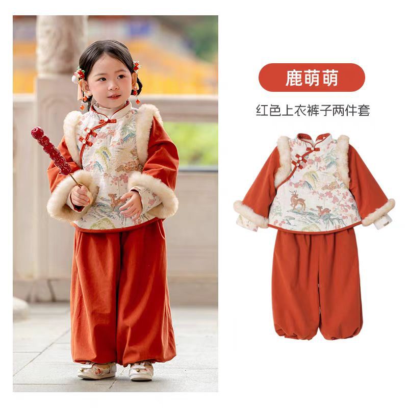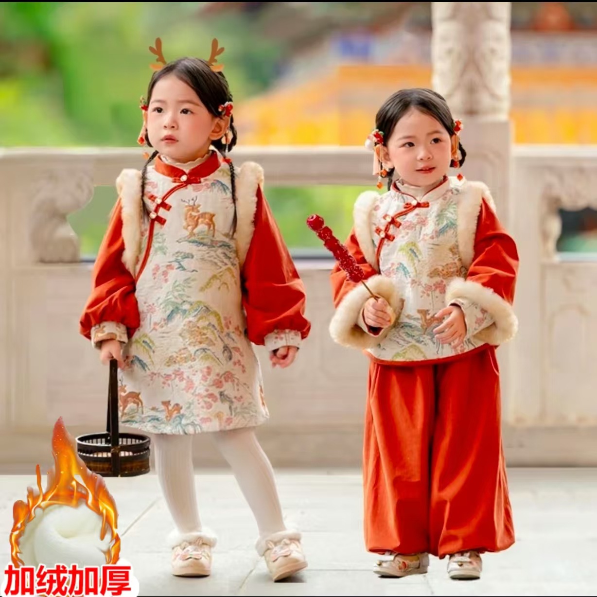 신한푸걸의 중국 스타일 사슴 멩멘그 겨울 두껍게 새 중국 청삼 설날 원피스 어린이 원피스스토어 가기