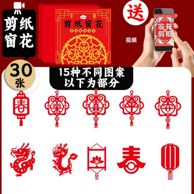 • 중형 - 설날 창 컷아웃 종이 30장/17.5*17.5cm