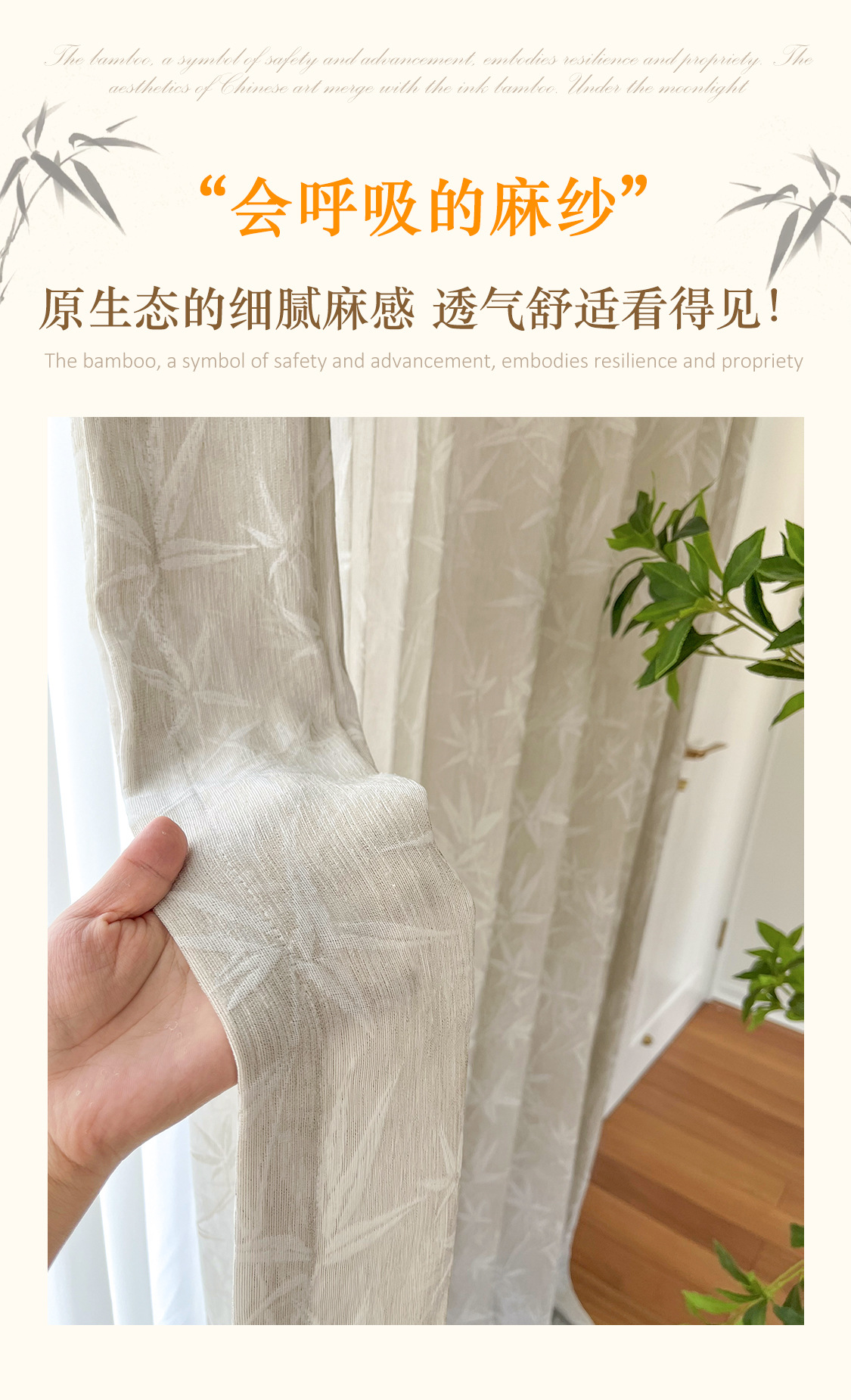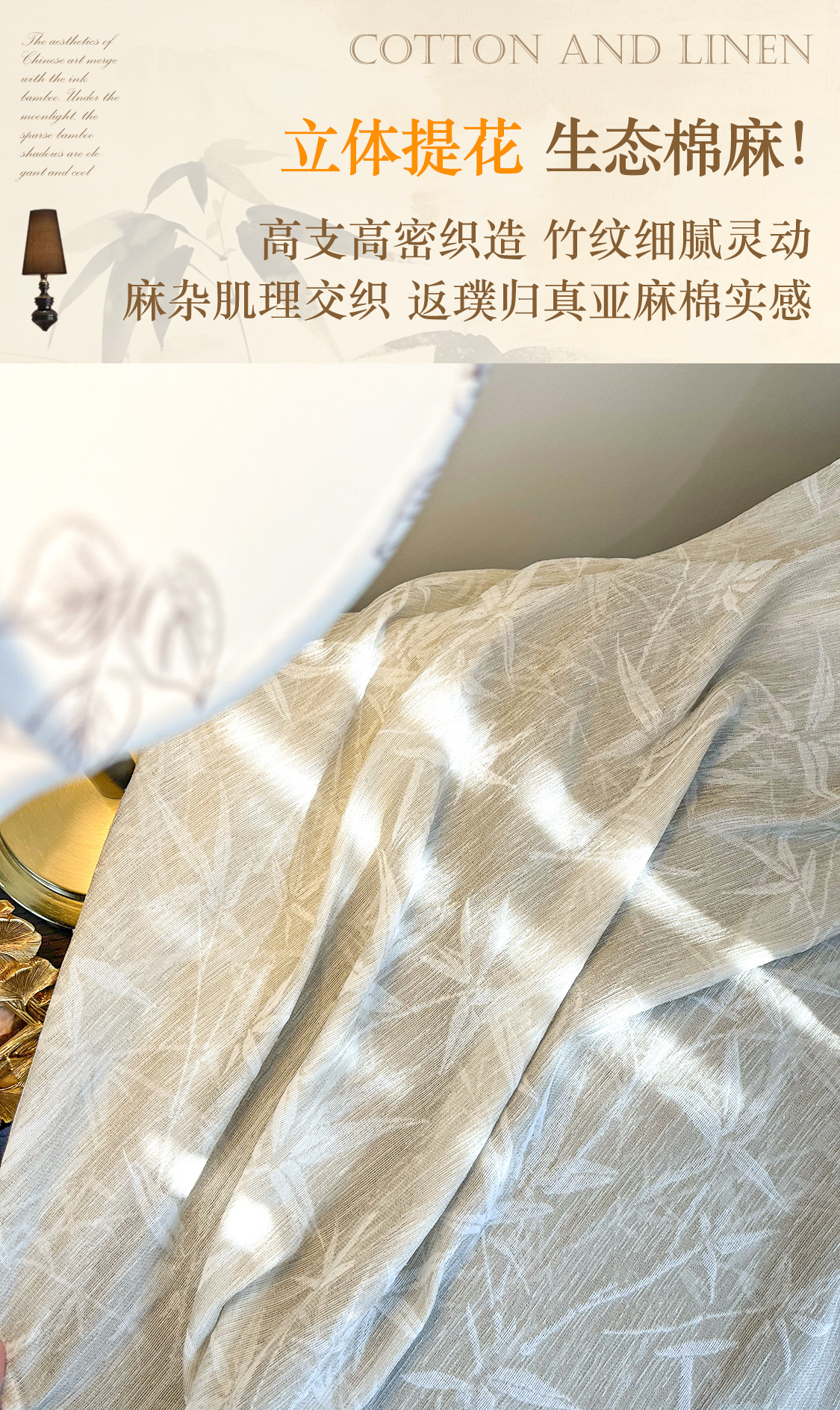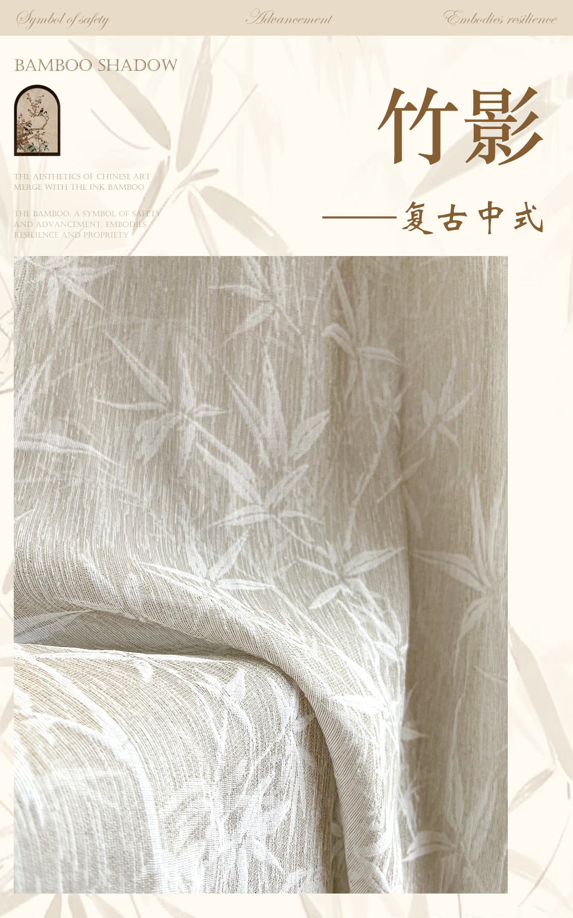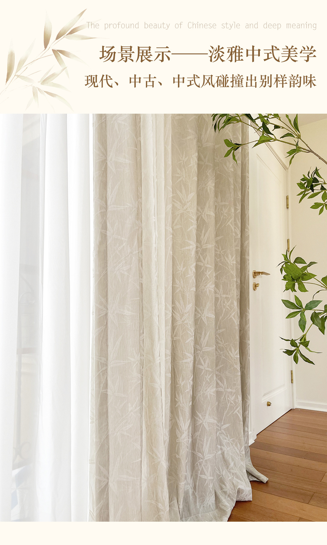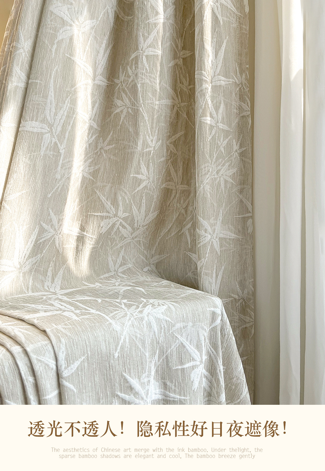 대나무 그림자 새로운 중국 양면 자카드 커튼 거실 발코니 스터디 룸 면 및 리넨 거즈 커튼 투명 빛 투과성 쌀 다크 브라운