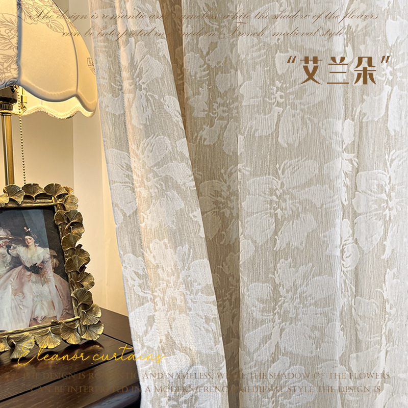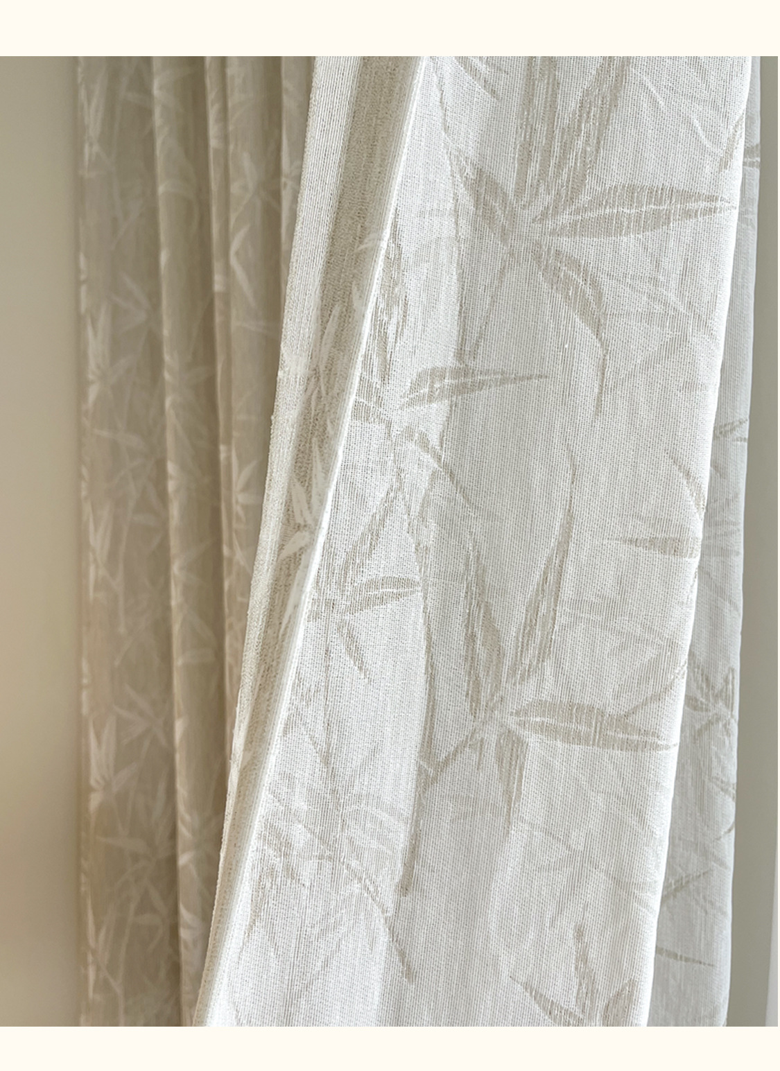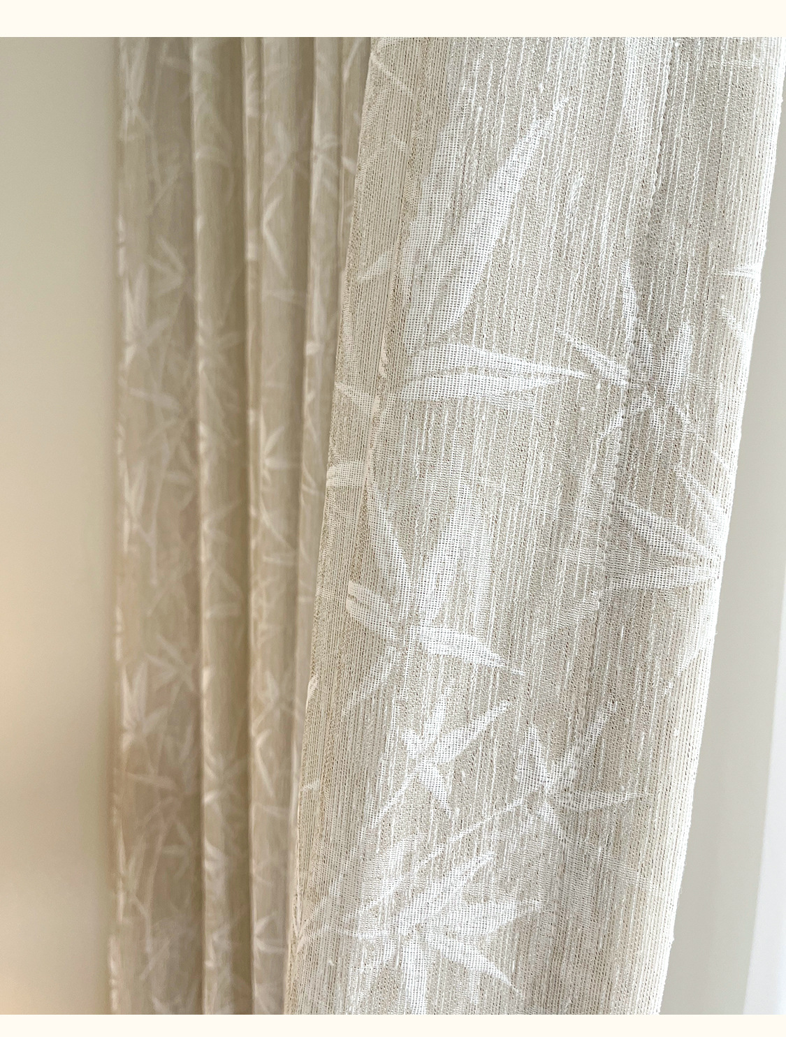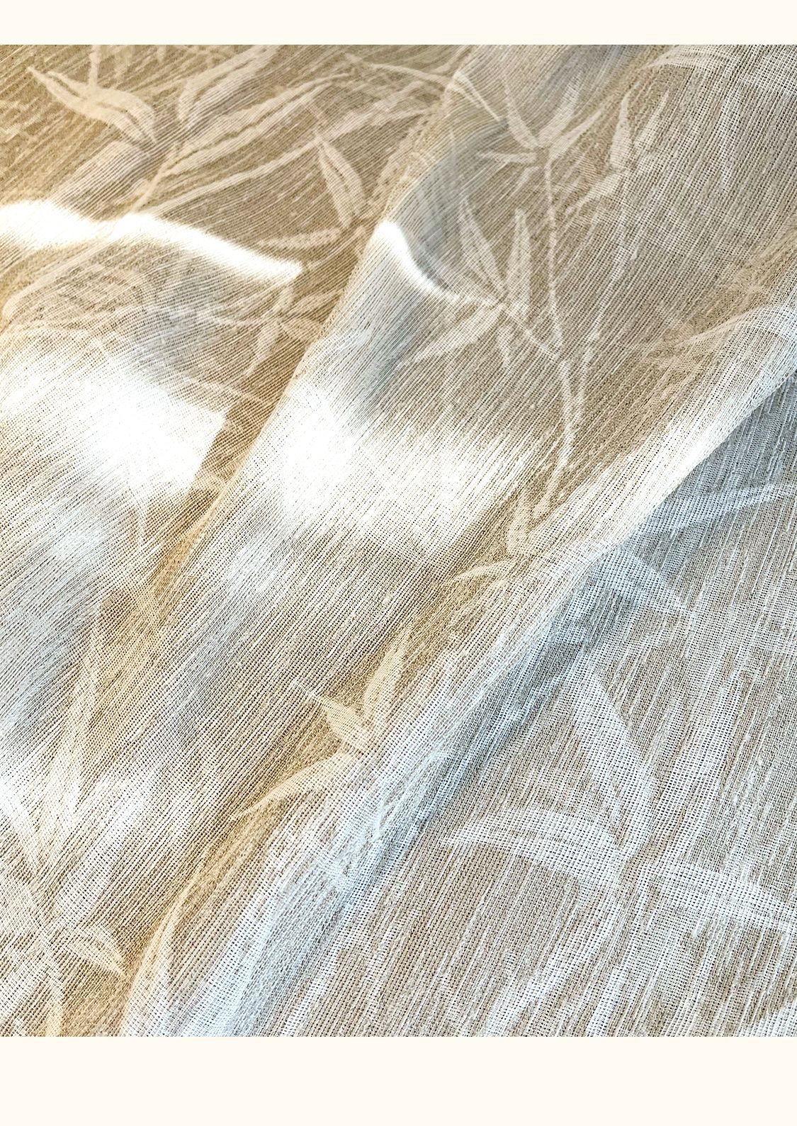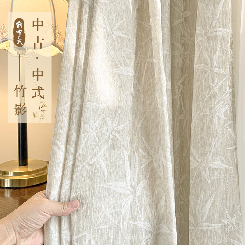 대나무 그림자 새로운 중국 양면 자카드 커튼 거실 발코니 스터디 룸 면 및 리넨 거즈 커튼 투명 빛 투과성 쌀 다크 브라운