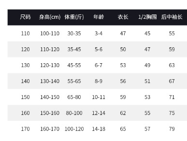 • 사이즈 110은 신장 100-110CM에 적합합니다.