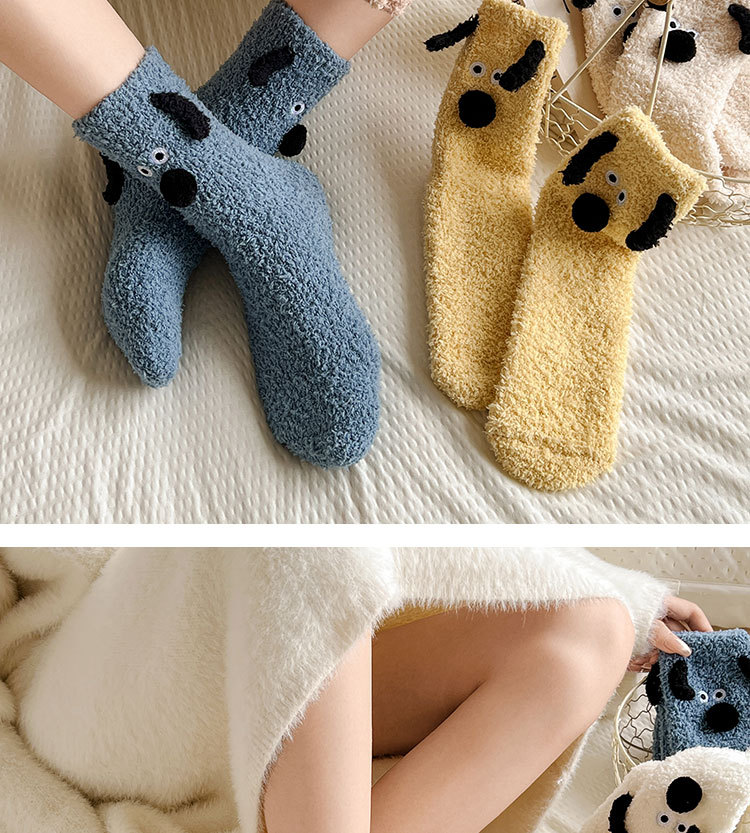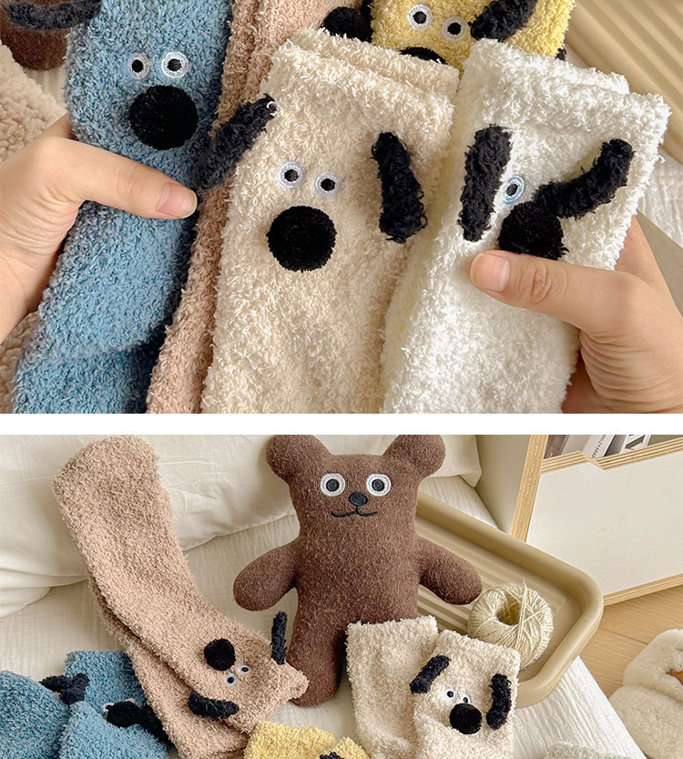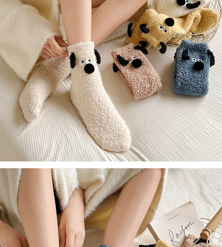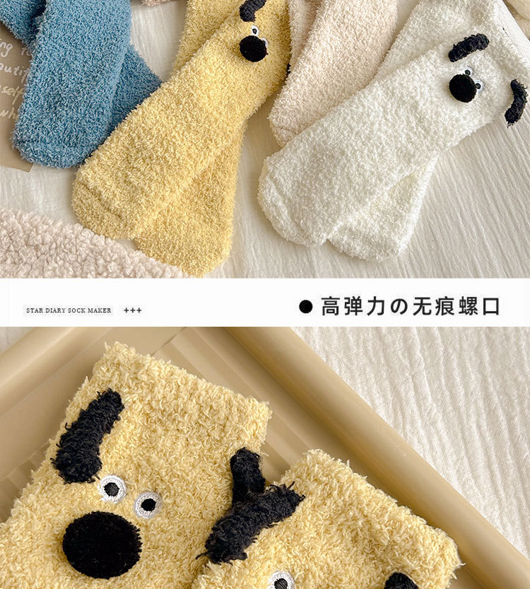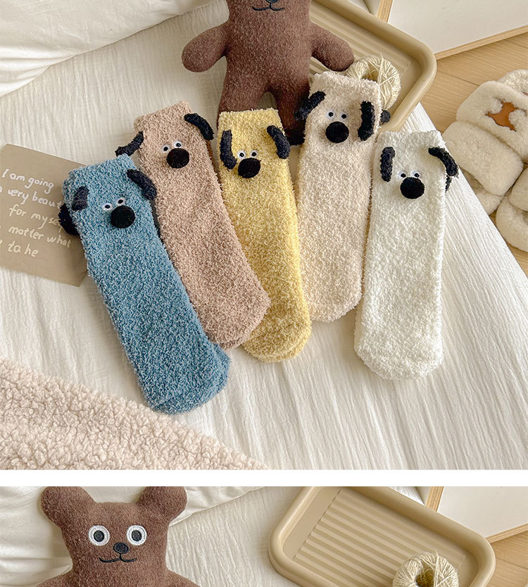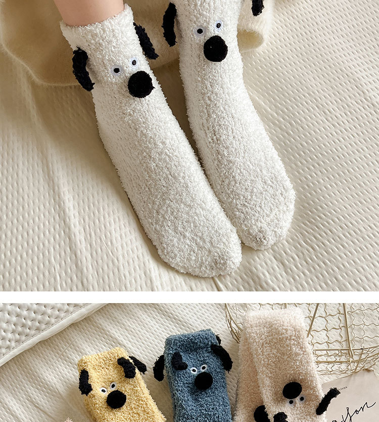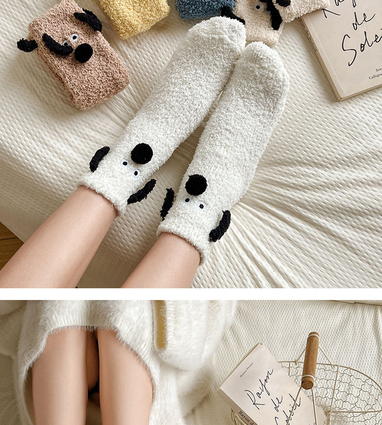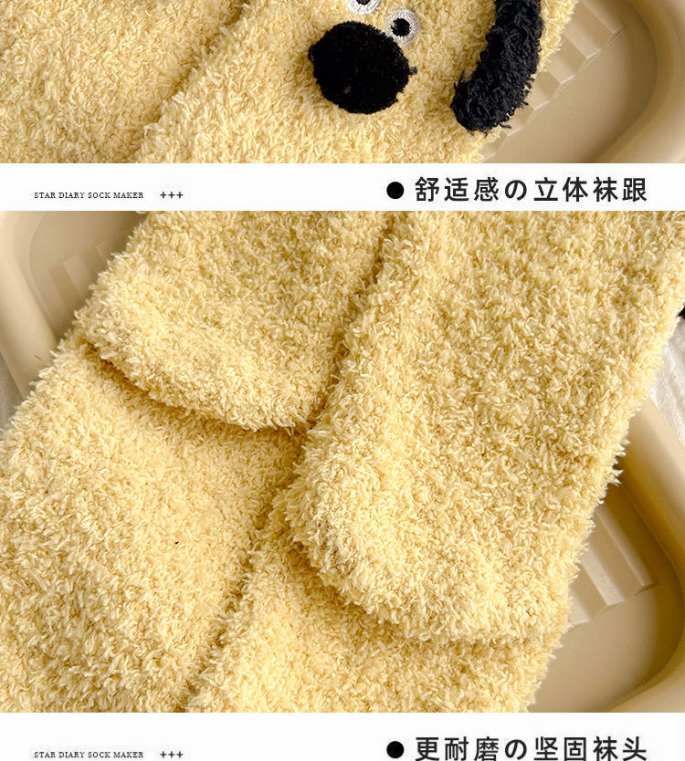 양말 여성의 겨울 두꺼운 따뜻한 중간 튜브 양말 귀여운 만화 강아지 산호 양털 겨울 홈 잠자는 바닥 양말스토어 가기