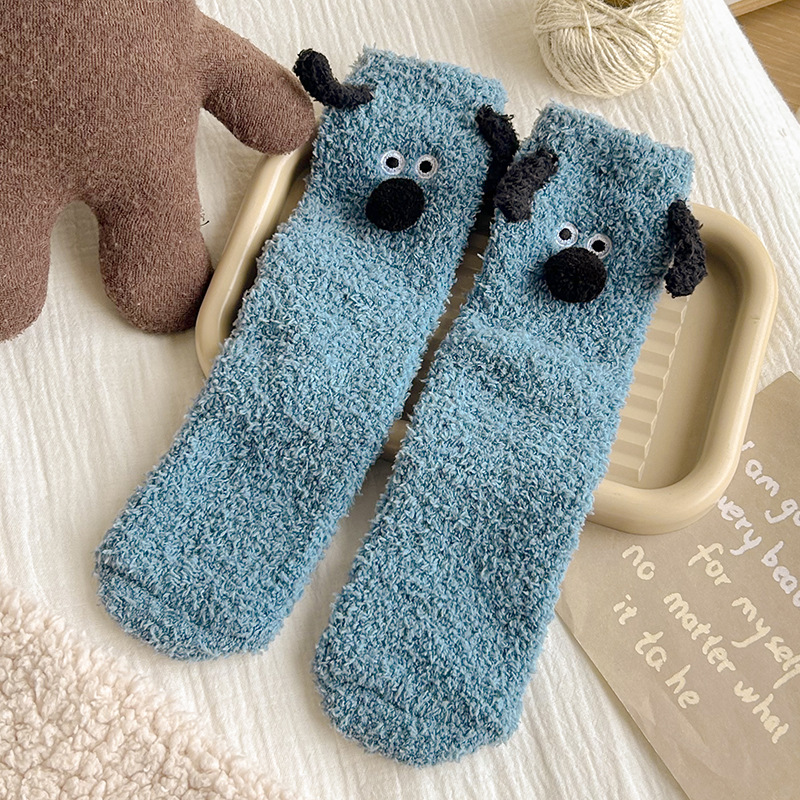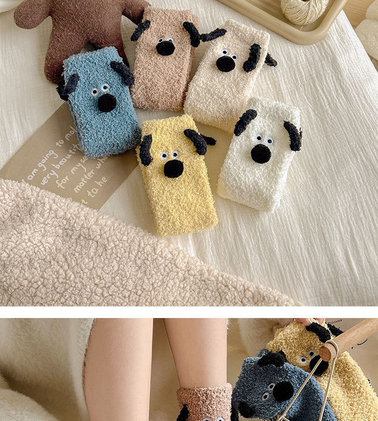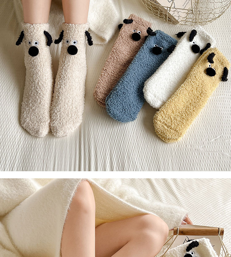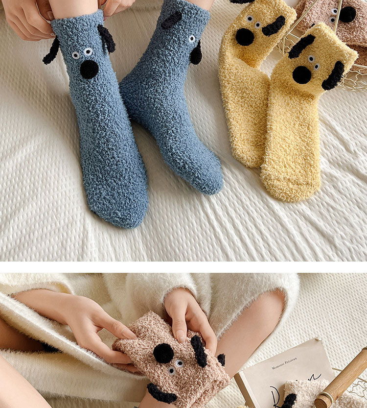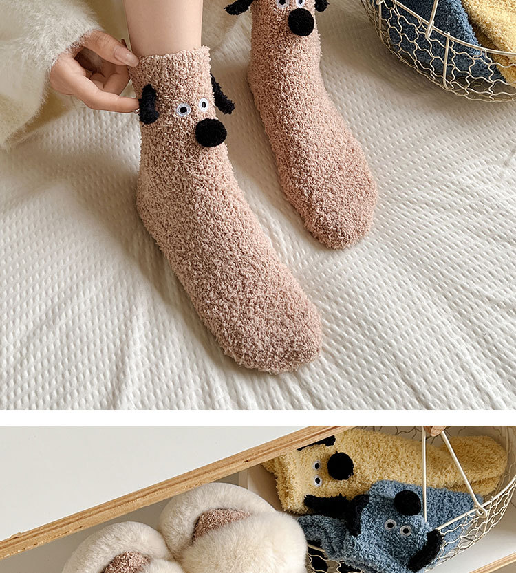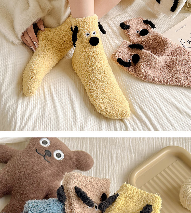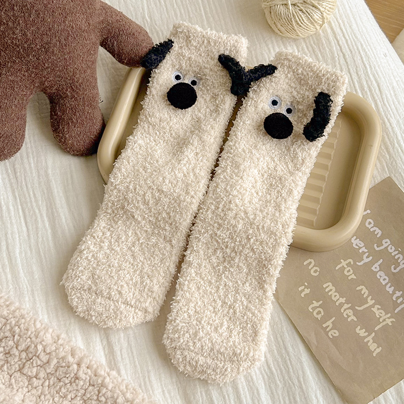 양말 여성의 겨울 두꺼운 따뜻한 중간 튜브 양말 귀여운 만화 강아지 산호 양털 겨울 홈 잠자는 바닥 양말스토어 가기