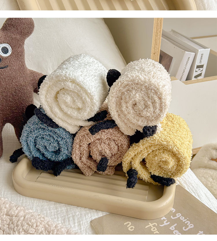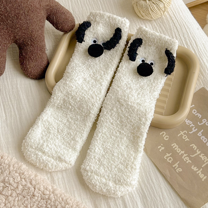 양말 여성의 겨울 두꺼운 따뜻한 중간 튜브 양말 귀여운 만화 강아지 산호 양털 겨울 홈 잠자는 바닥 양말