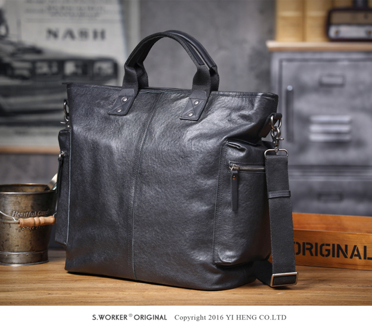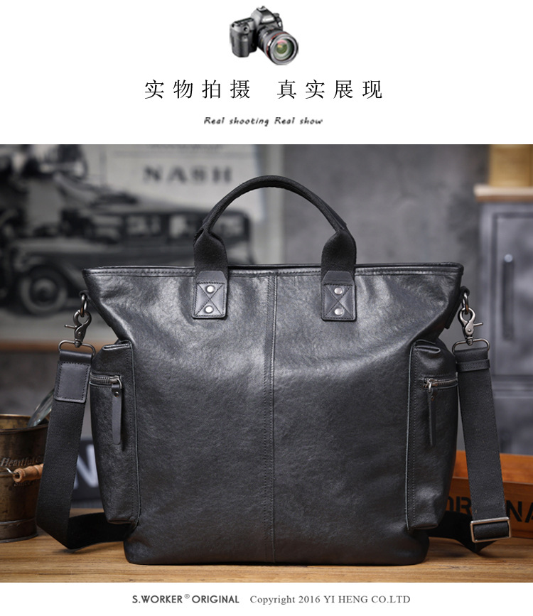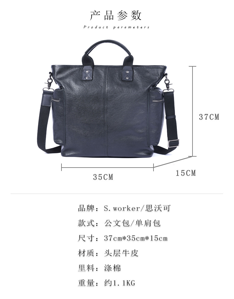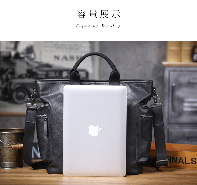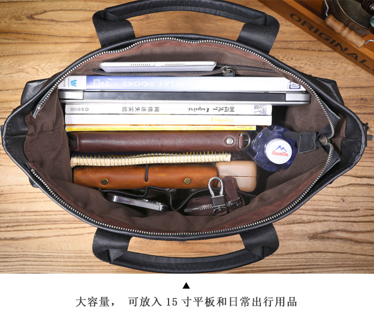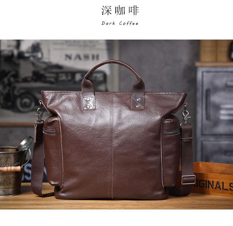 탑 레이어 Cowhide 남성용 핸드백 원래 디자인 대용량 정품 가죽 어깨 크로스 바디 컴퓨터 가방 야채 태닝 가죽 공식 문서스토어 가기