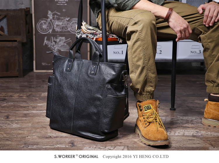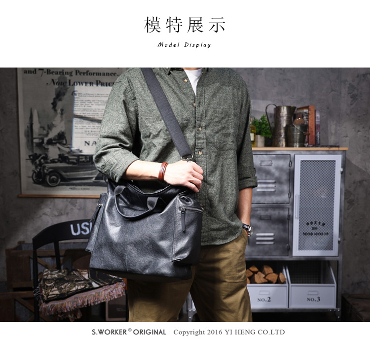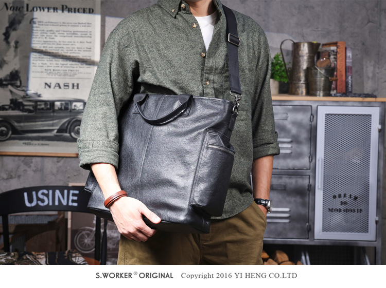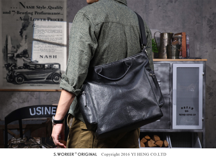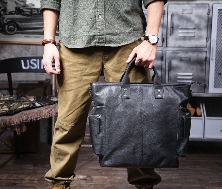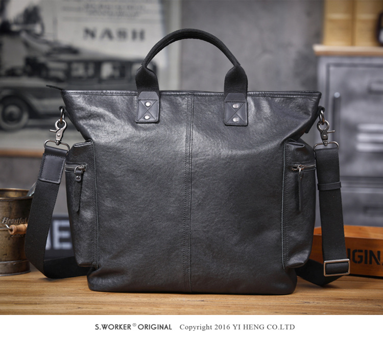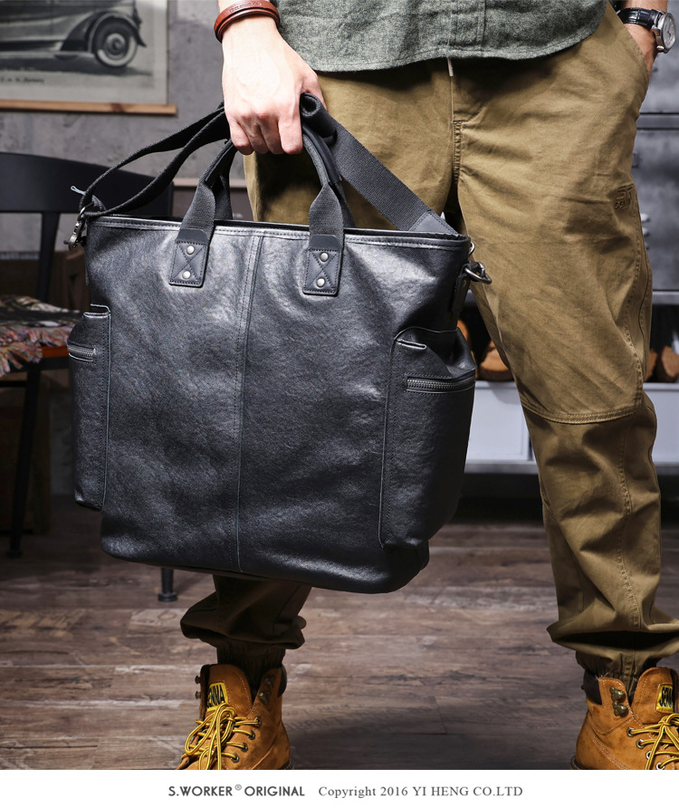 탑 레이어 Cowhide 남성용 핸드백 원래 디자인 대용량 정품 가죽 어깨 크로스 바디 컴퓨터 가방 야채 태닝 가죽 공식 문서스토어 가기