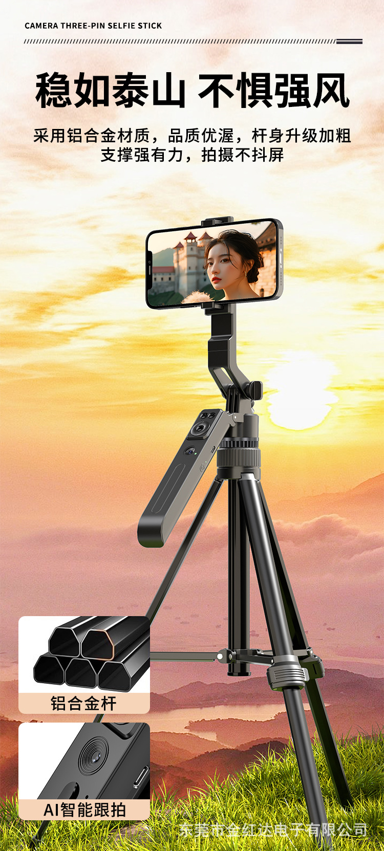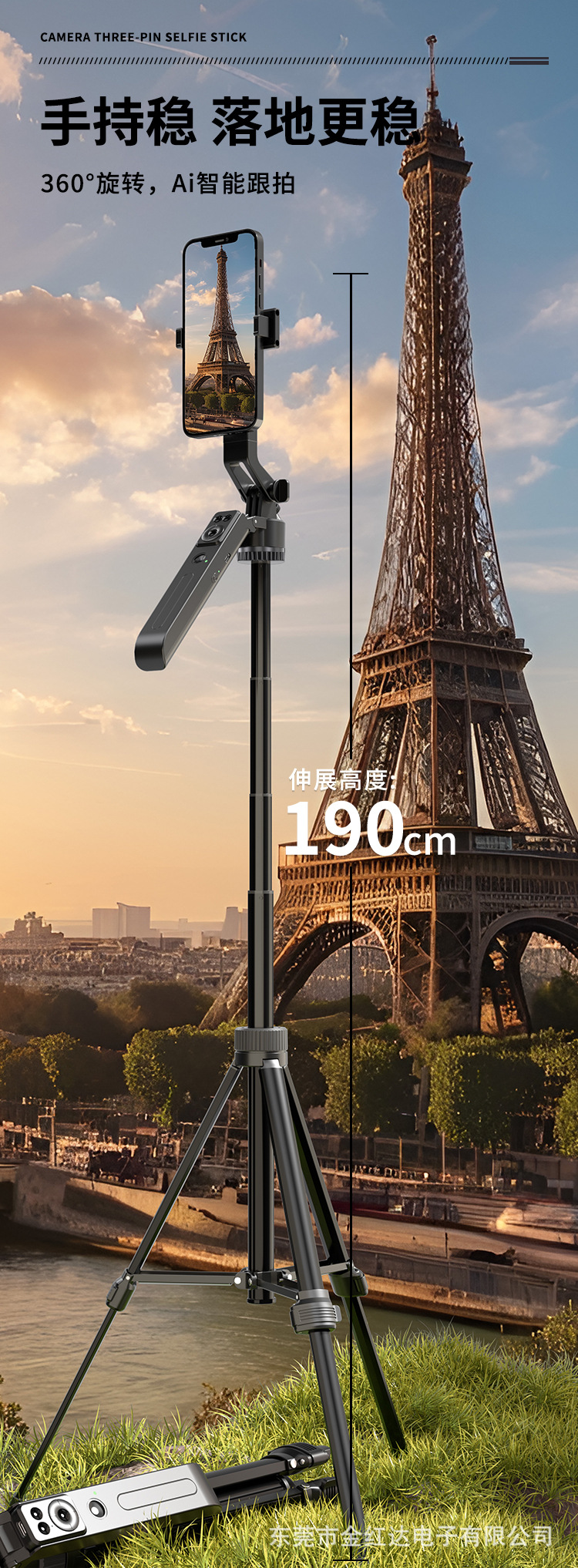 블루투스 휴대폰 셀카봉 얼굴 추적 및 촬영용 짐벌 금속 일체형 삼각대 360도 회전 AI 촬영