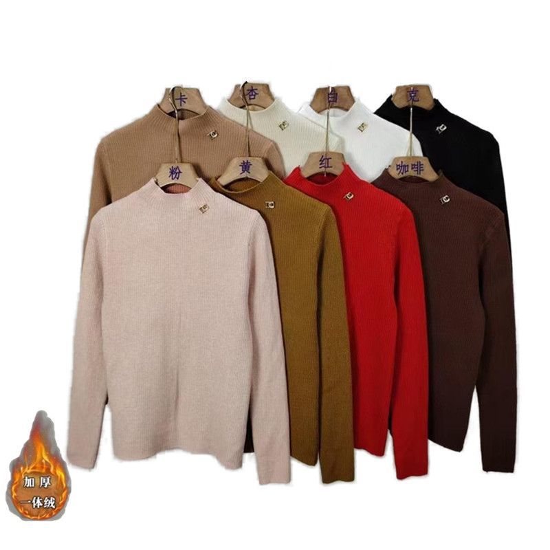 기모 두꺼운 원피스 반터틀넥 스웨터 여성의 가을과 겨울 2024 새로운 니트 내베이스 셔츠 탑스토어 가기