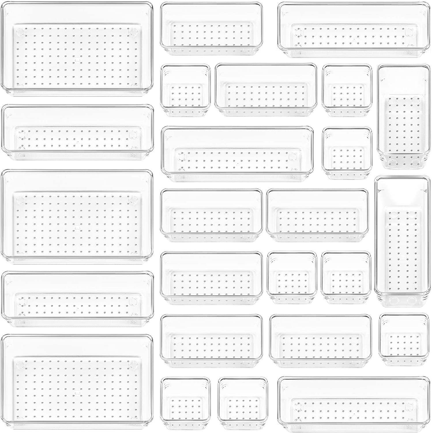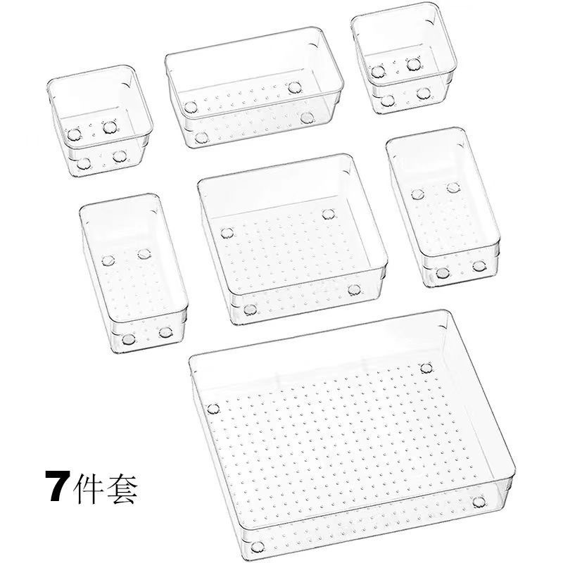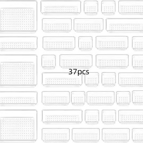 국경 25 조각 투명한 PET 플라스틱 데스크탑 서랍 저장 상자 주방 다기능 조합 저장 상자 보석 상자