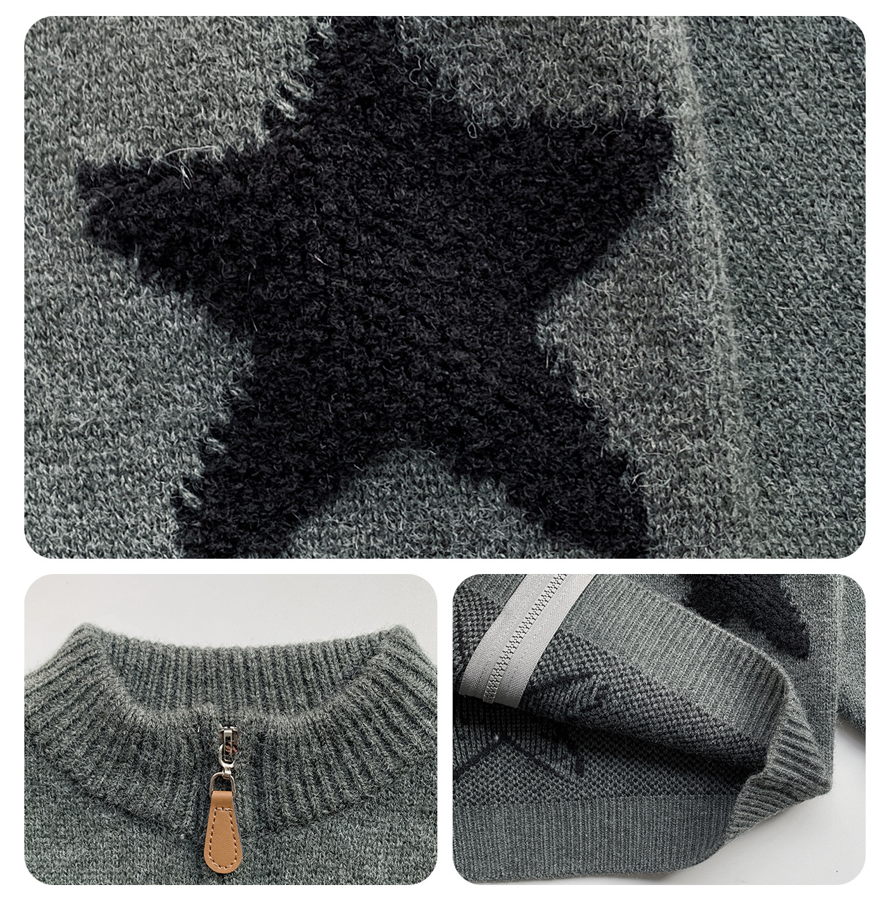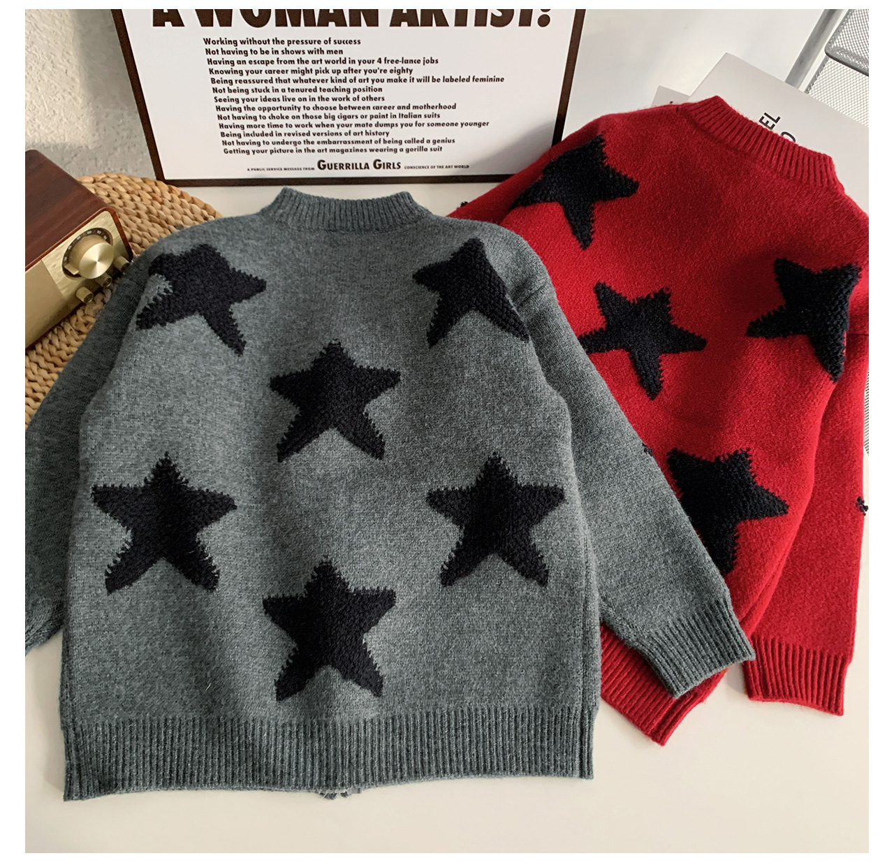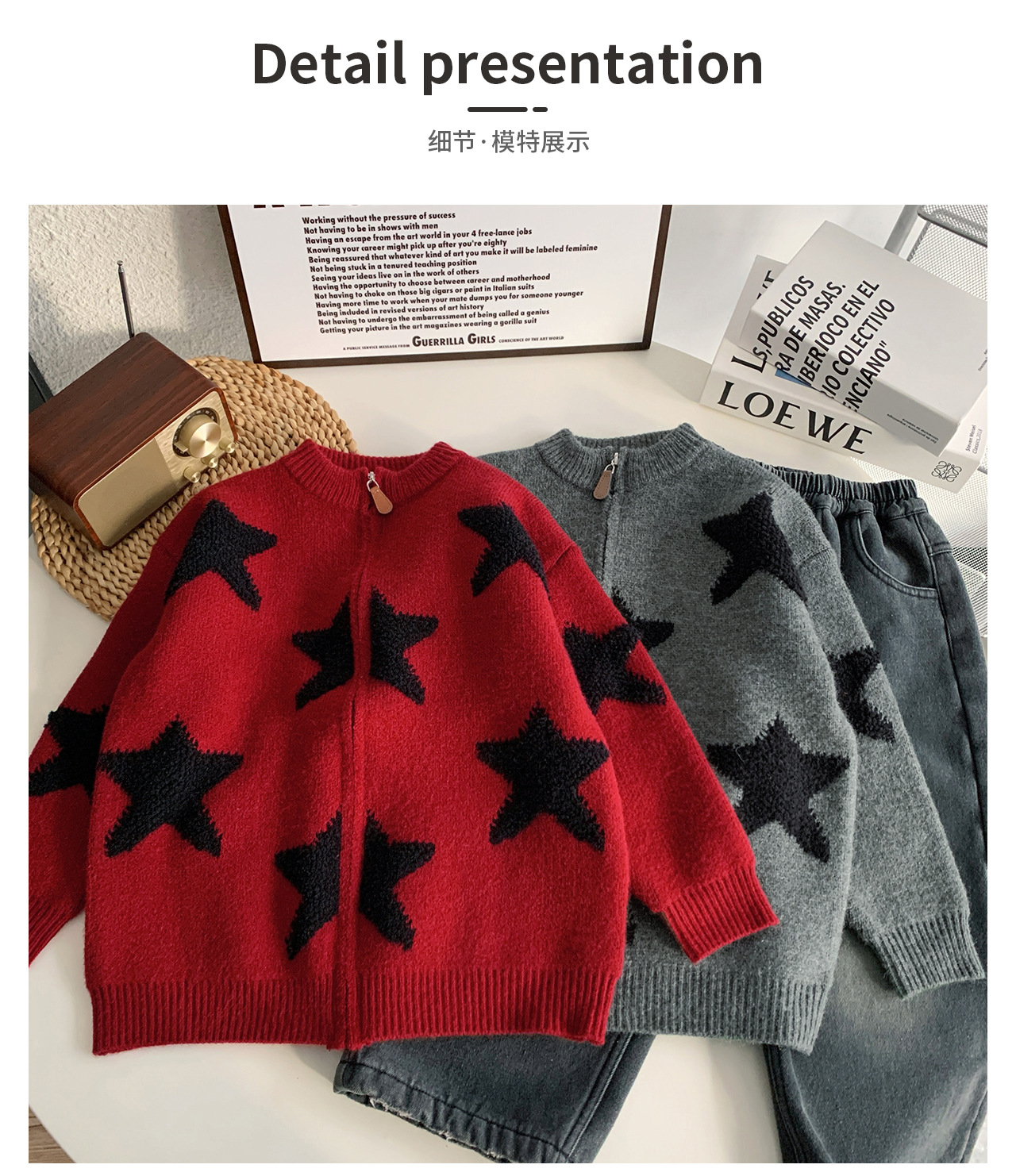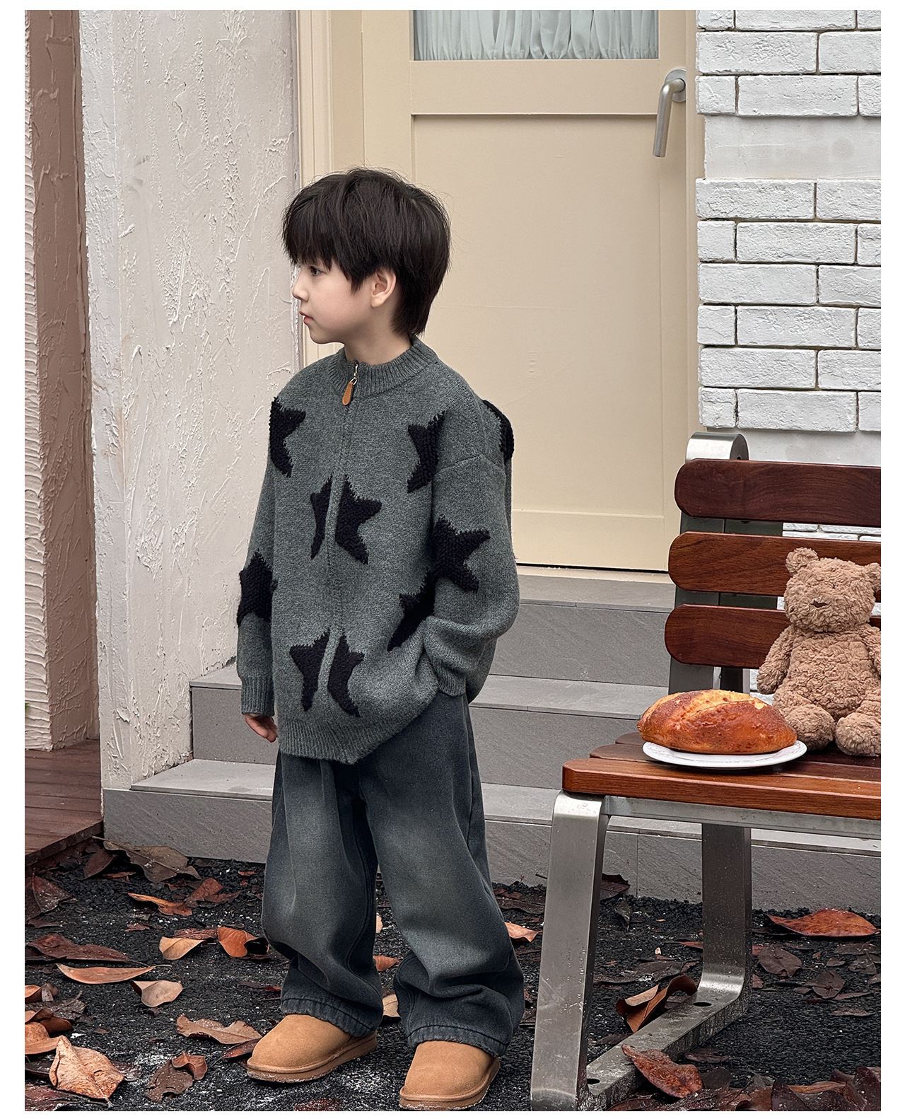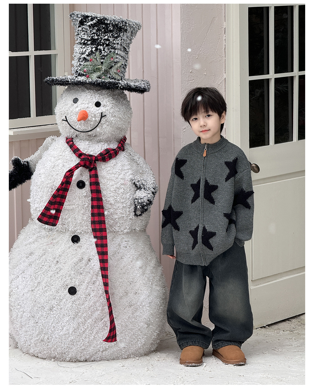 통쿠 2025 아동 겨울용 호주직물 아동복 별자수 지퍼 니트 가디건 두꺼운 남아용 스웨터스토어 가기