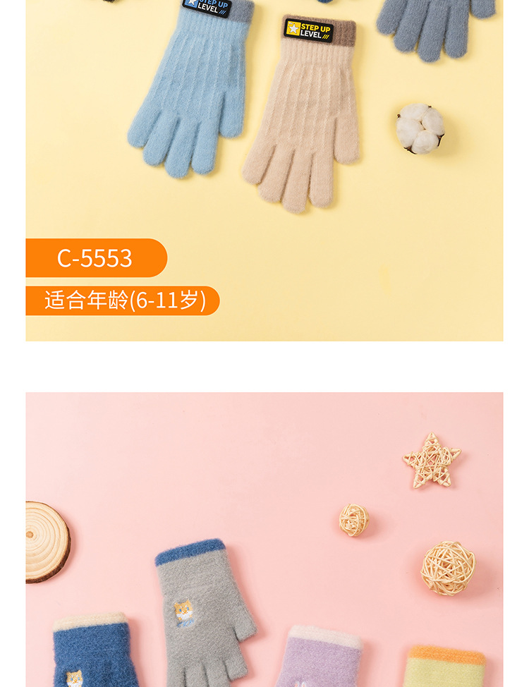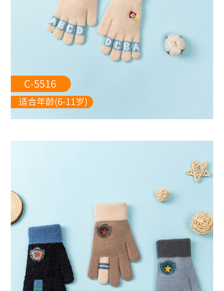 2024 Xuehuaxiu 가을과 겨울 새로운 도착 남자 중학교 학생 패션 자수 5 개 별 인터컬러 손가락 장갑 따뜻한스토어 가기