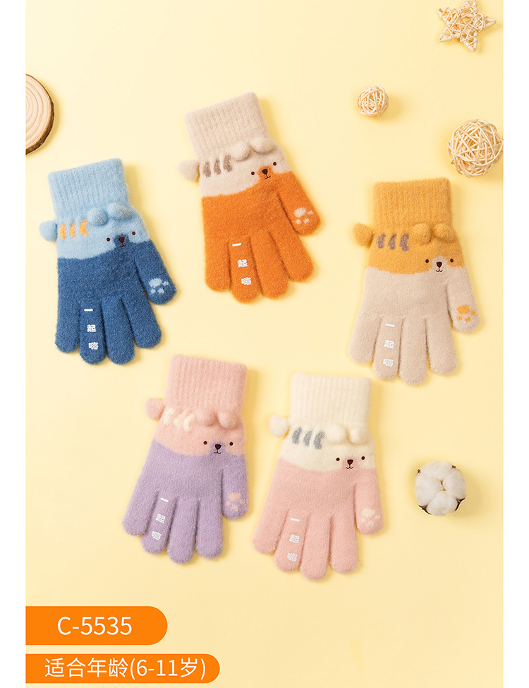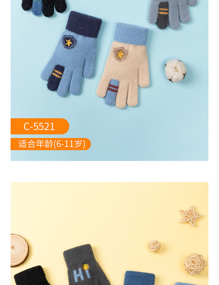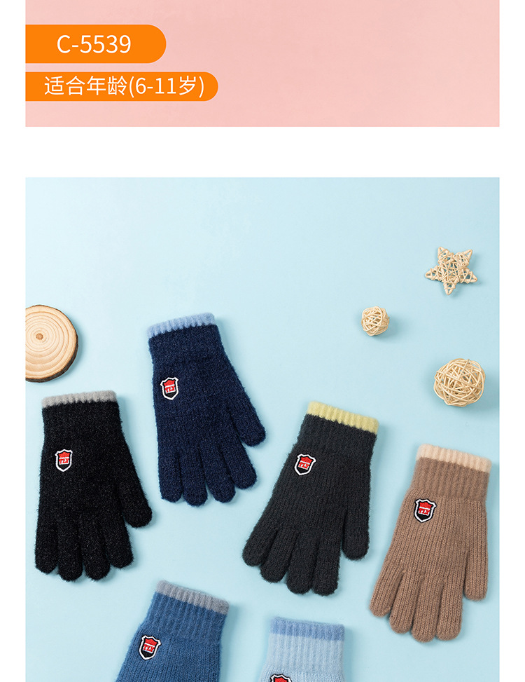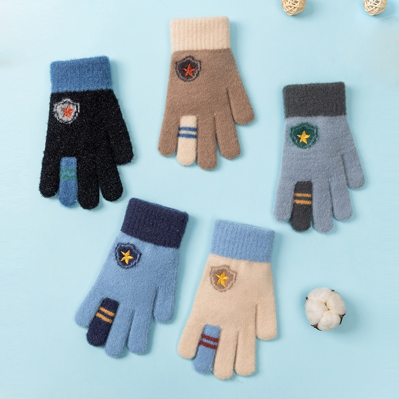 2024 Xuehuaxiu 가을과 겨울 새로운 도착 남자 중학교 학생 패션 자수 5 개 별 인터컬러 손가락 장갑 따뜻한