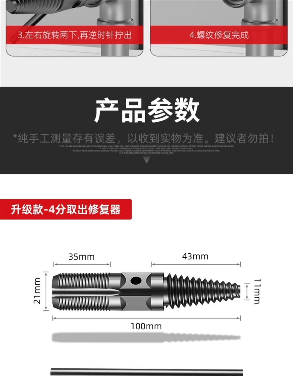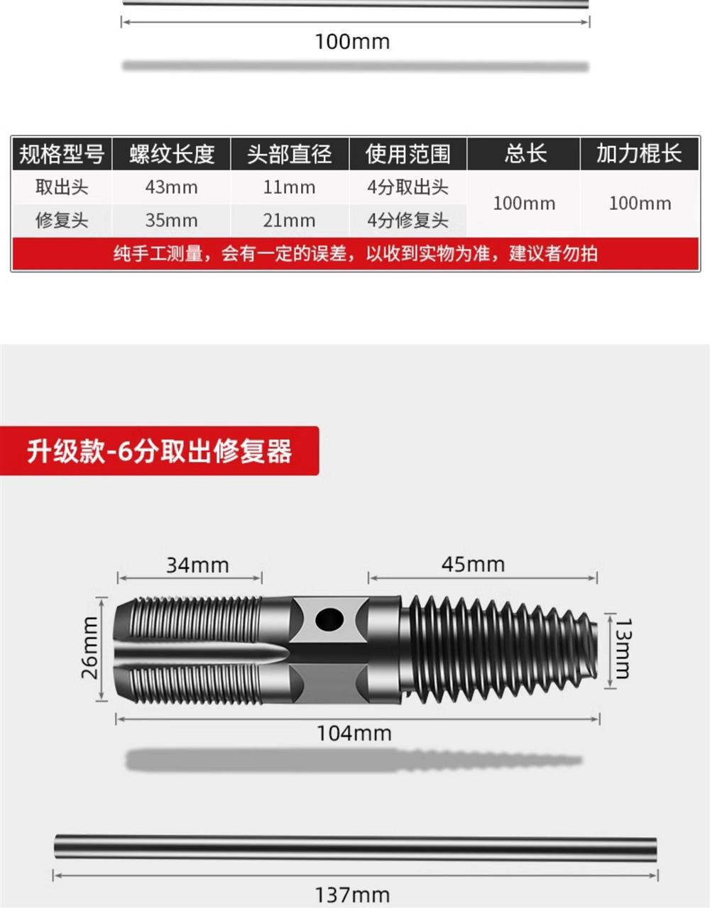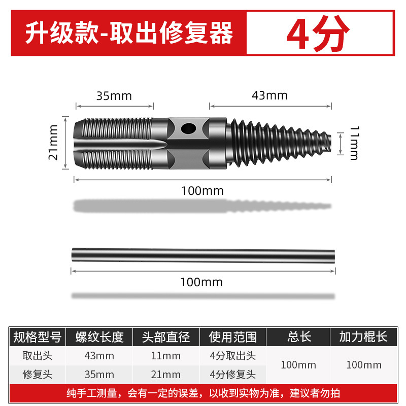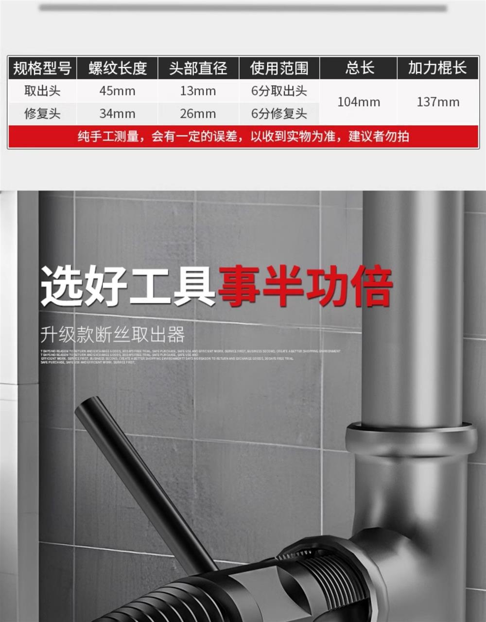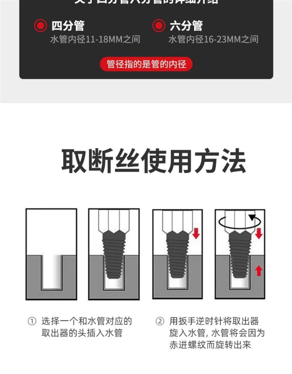 수도꼭지 깨진 와이어 추출 장치 4 점 나사 깨진 수도관 이중 헤드 후진 와이어 추출 깨진 헤드 탭 6 점 와이어 추출 장치