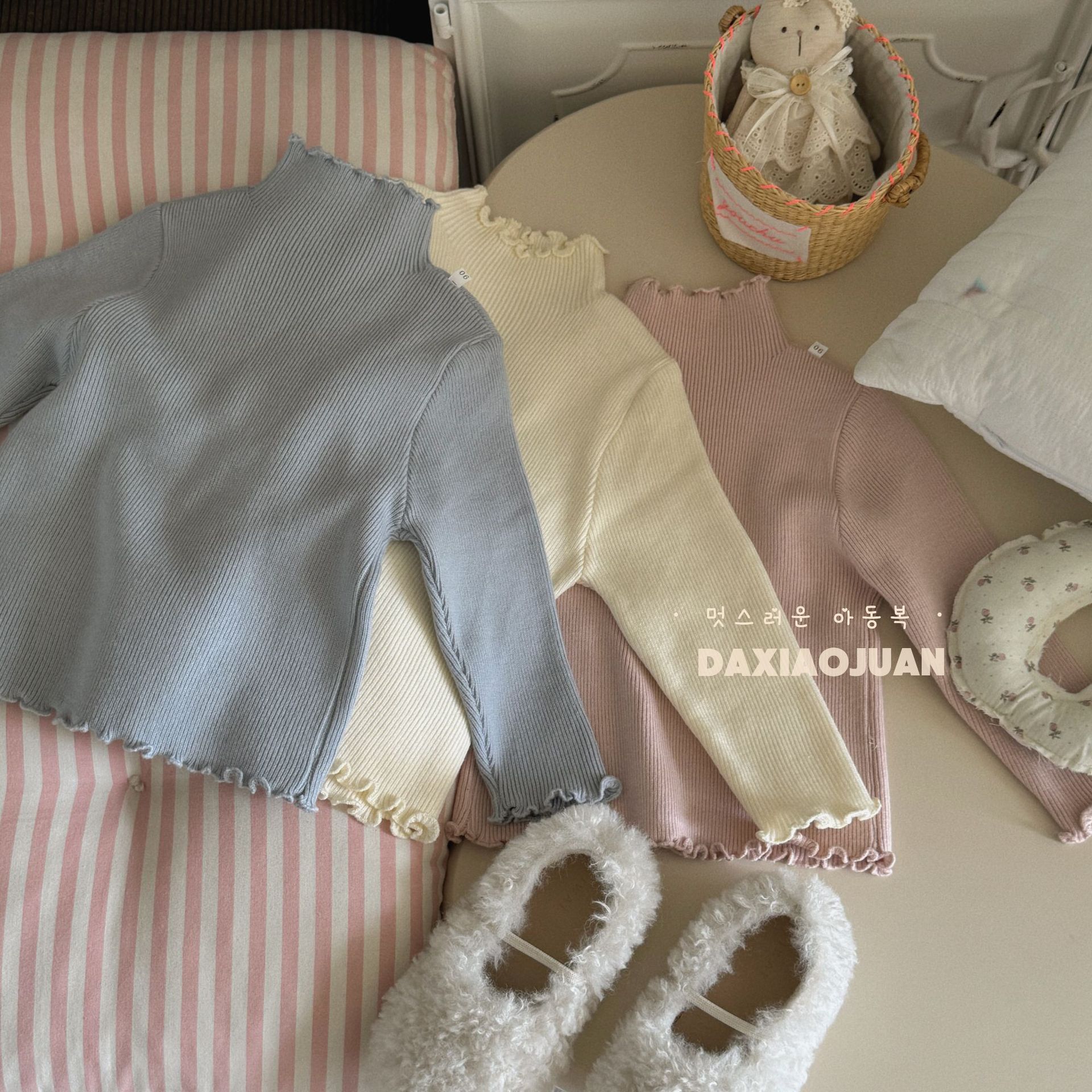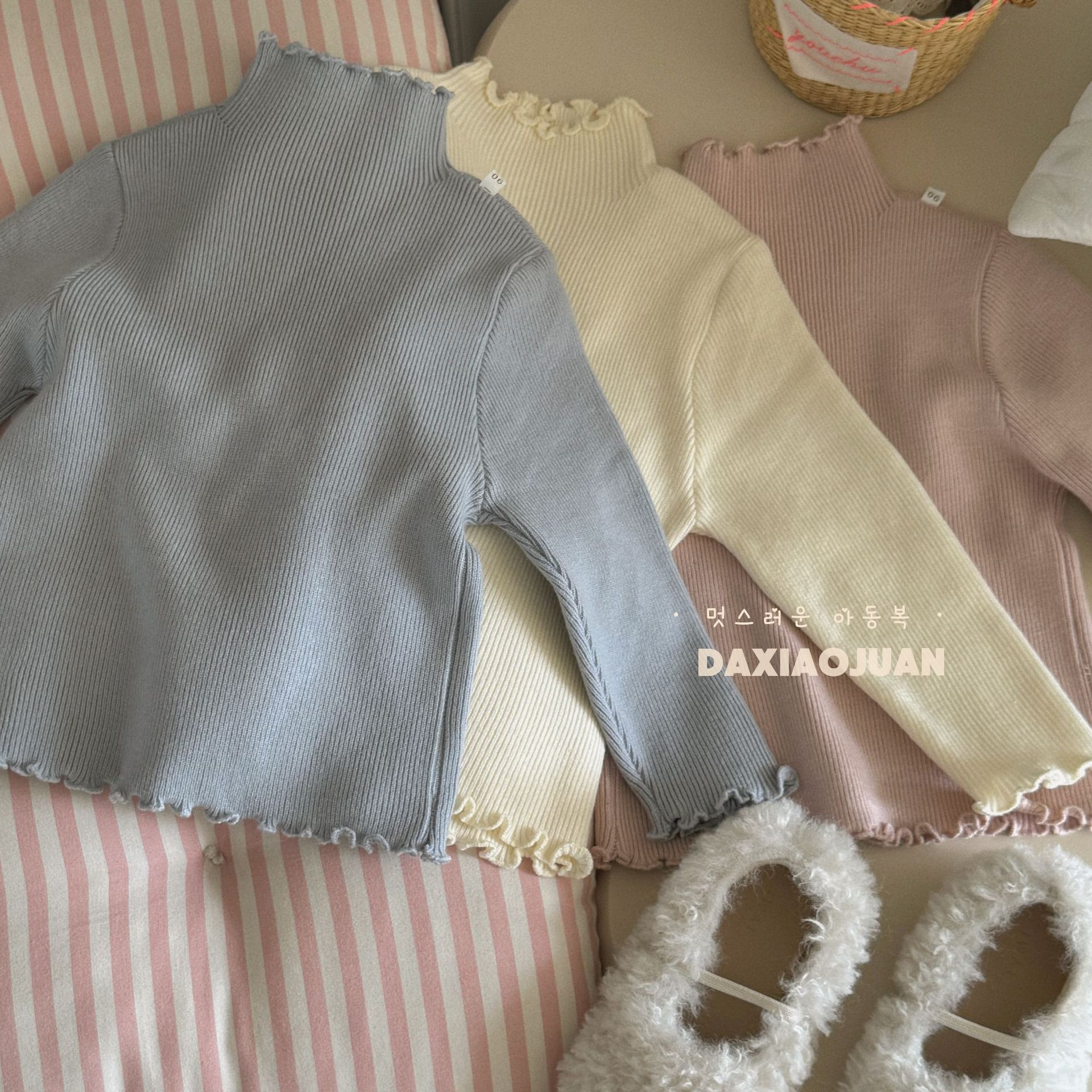 작고 큰 롤 소녀 바닥 셔츠 어린이 겨울 단색 스웨터 아기 소녀의 반 높은 칼라 바닥 스웨터 아동복