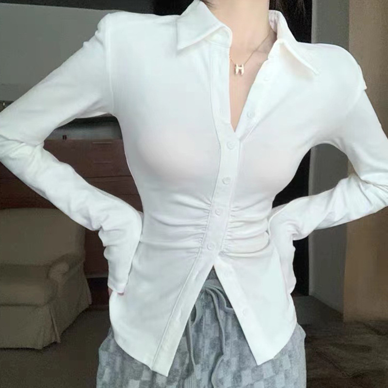 가을 2024 새로운 한국 스타일 순수한 욕망 스타일 타이트 허리 셔츠 여성용 긴 소매 셔츠 디자인 센스 스파이스 소녀 슬림 룩 트렌디 탑스토어 가기