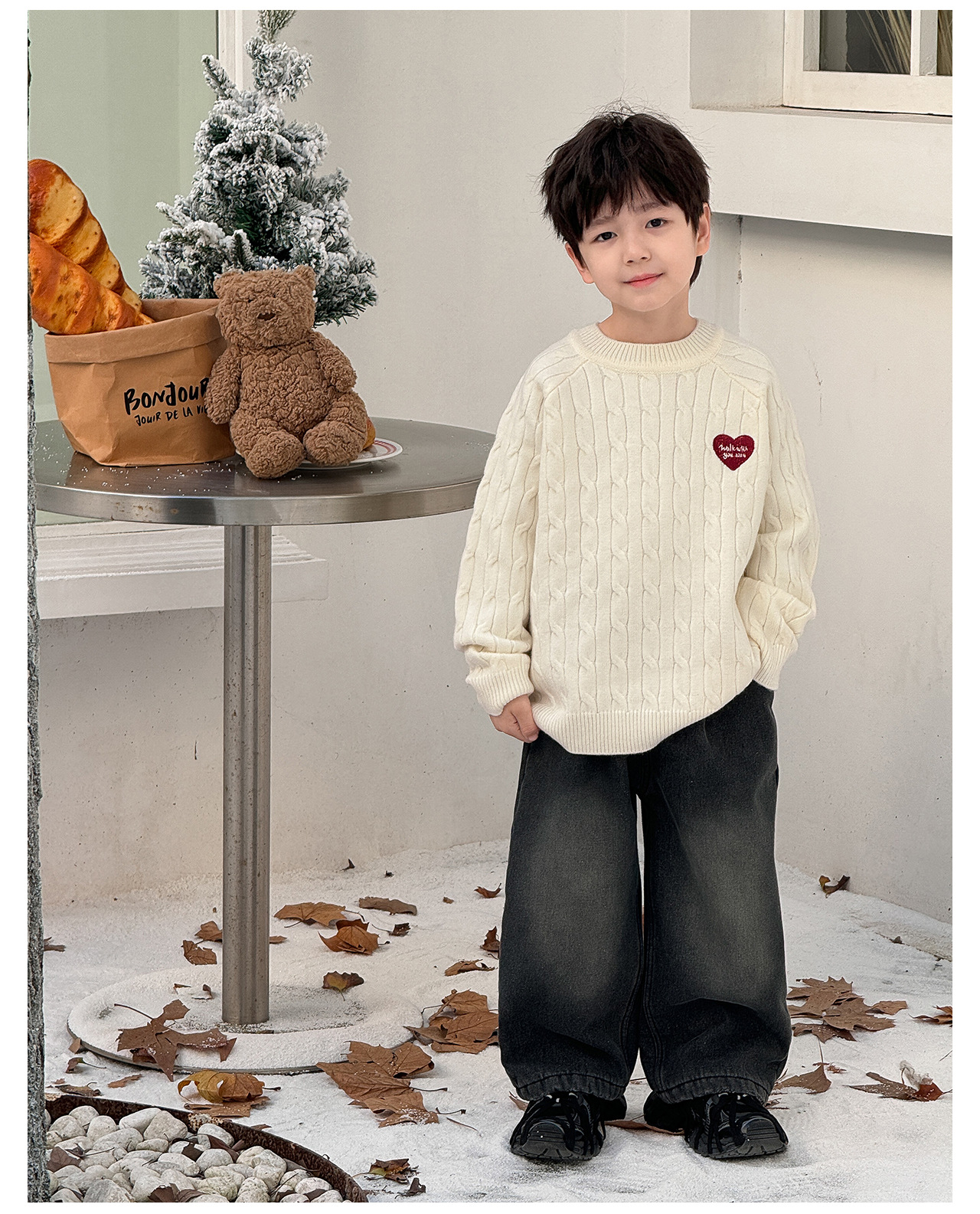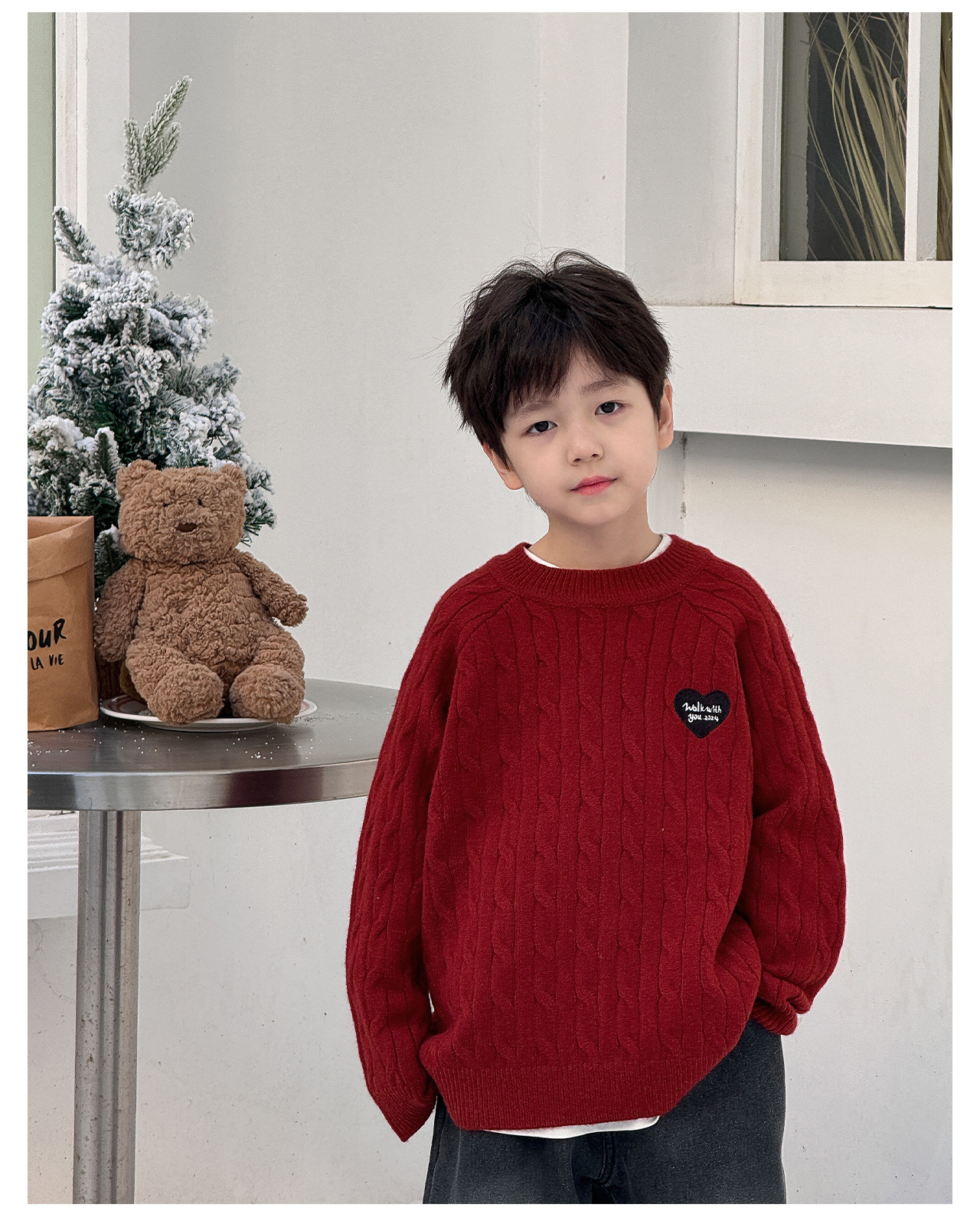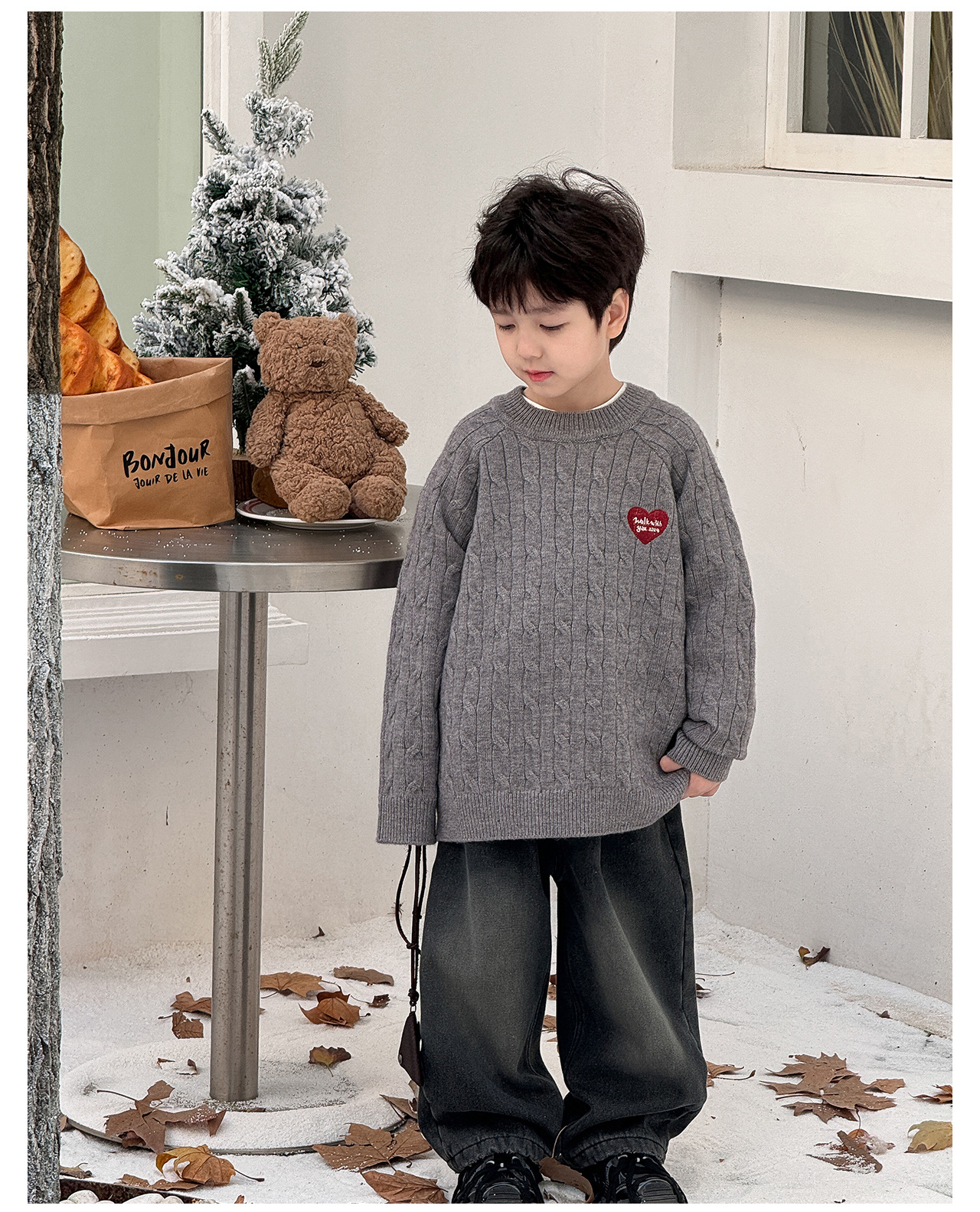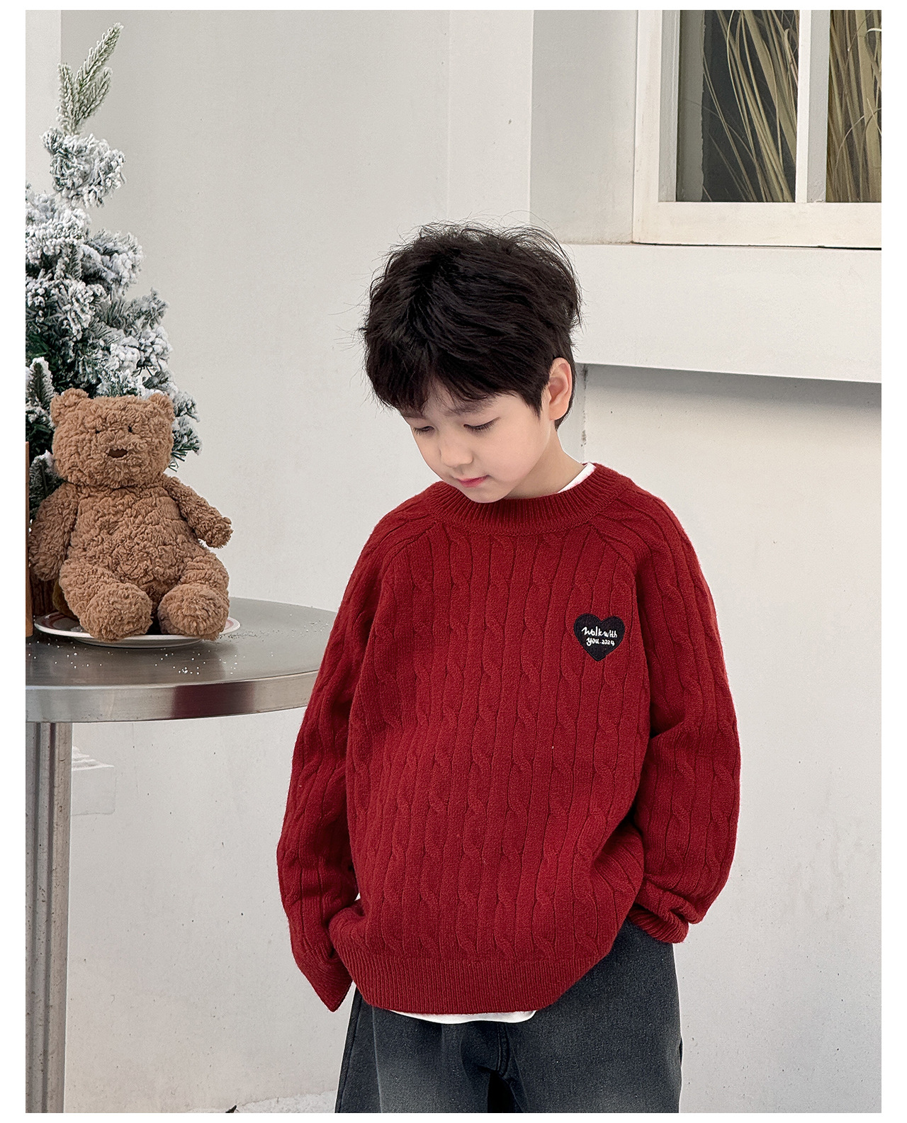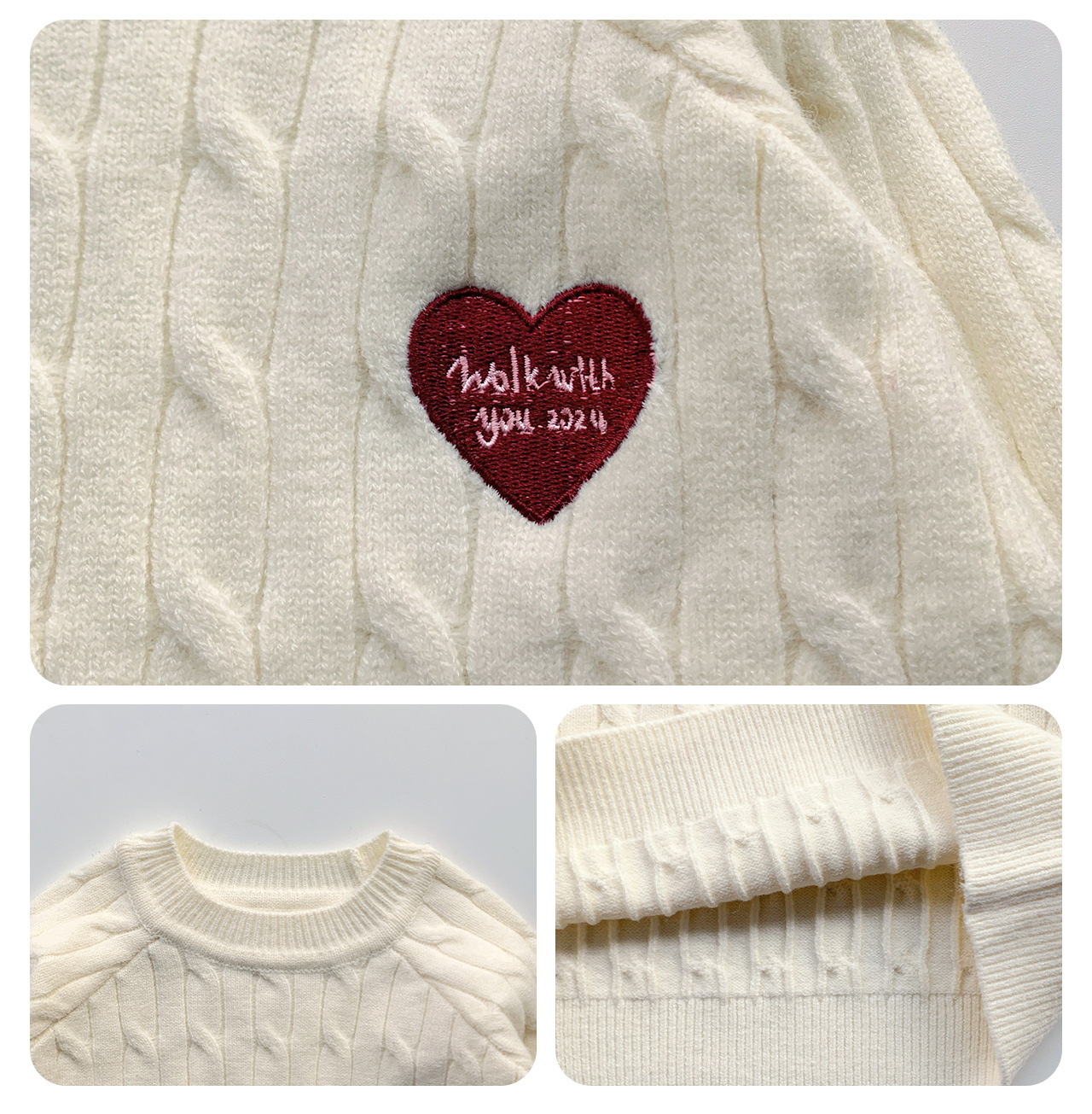 통쿠2025 어린이 겨울용 호주직물 어린이복 하트 문자 자수 니트 두꺼운 남아용 스웨터 트렌디스토어 가기