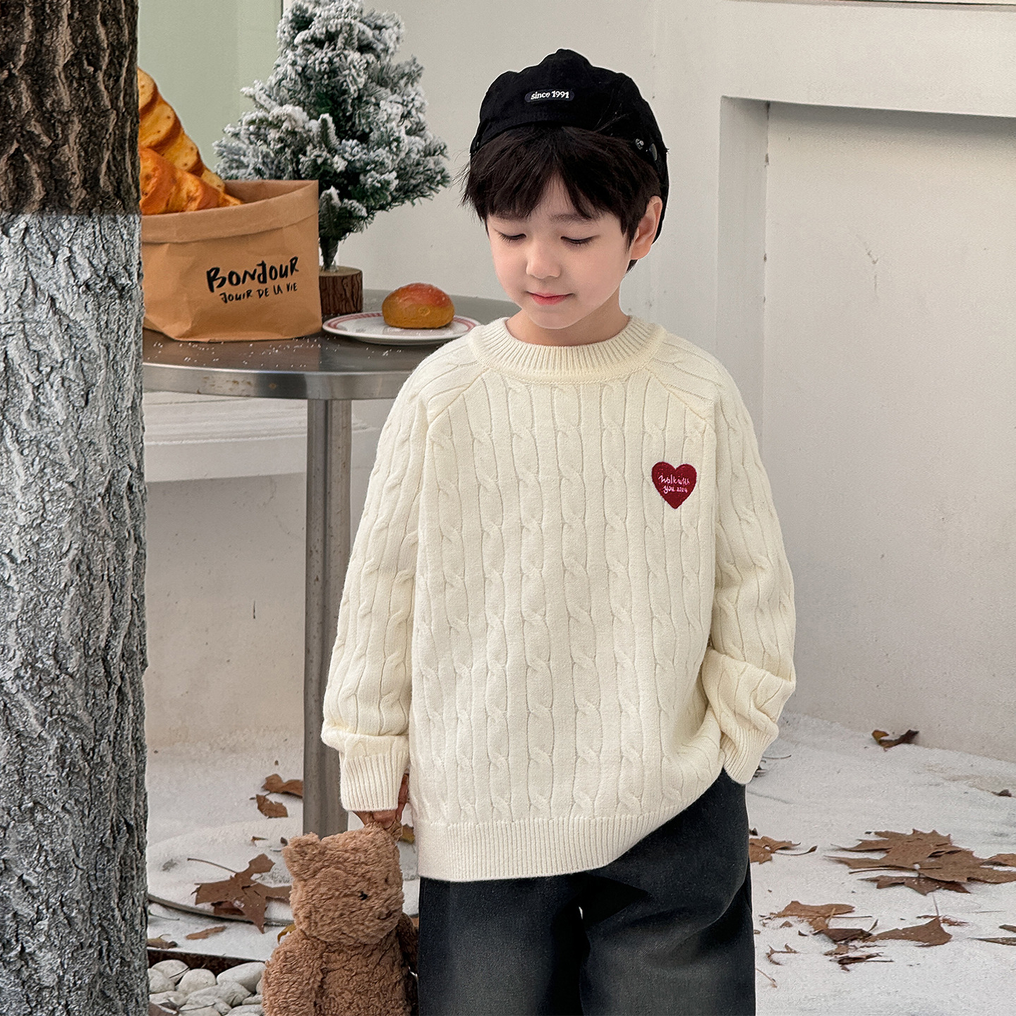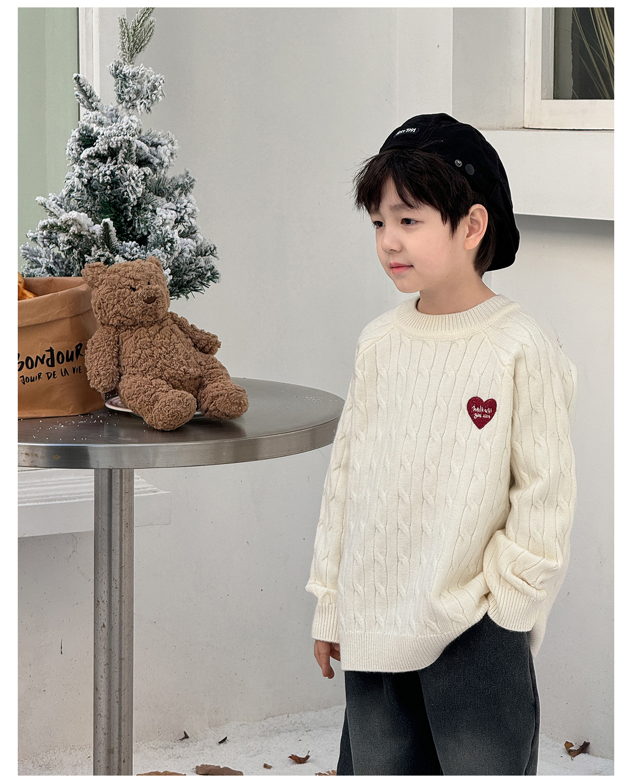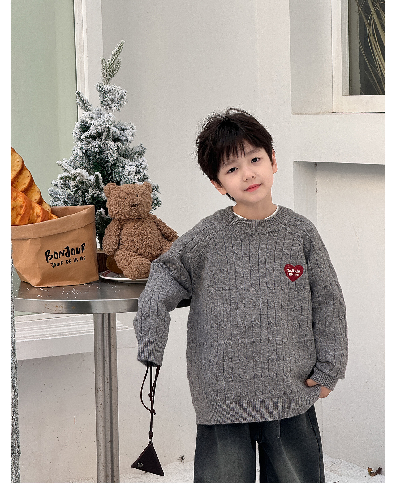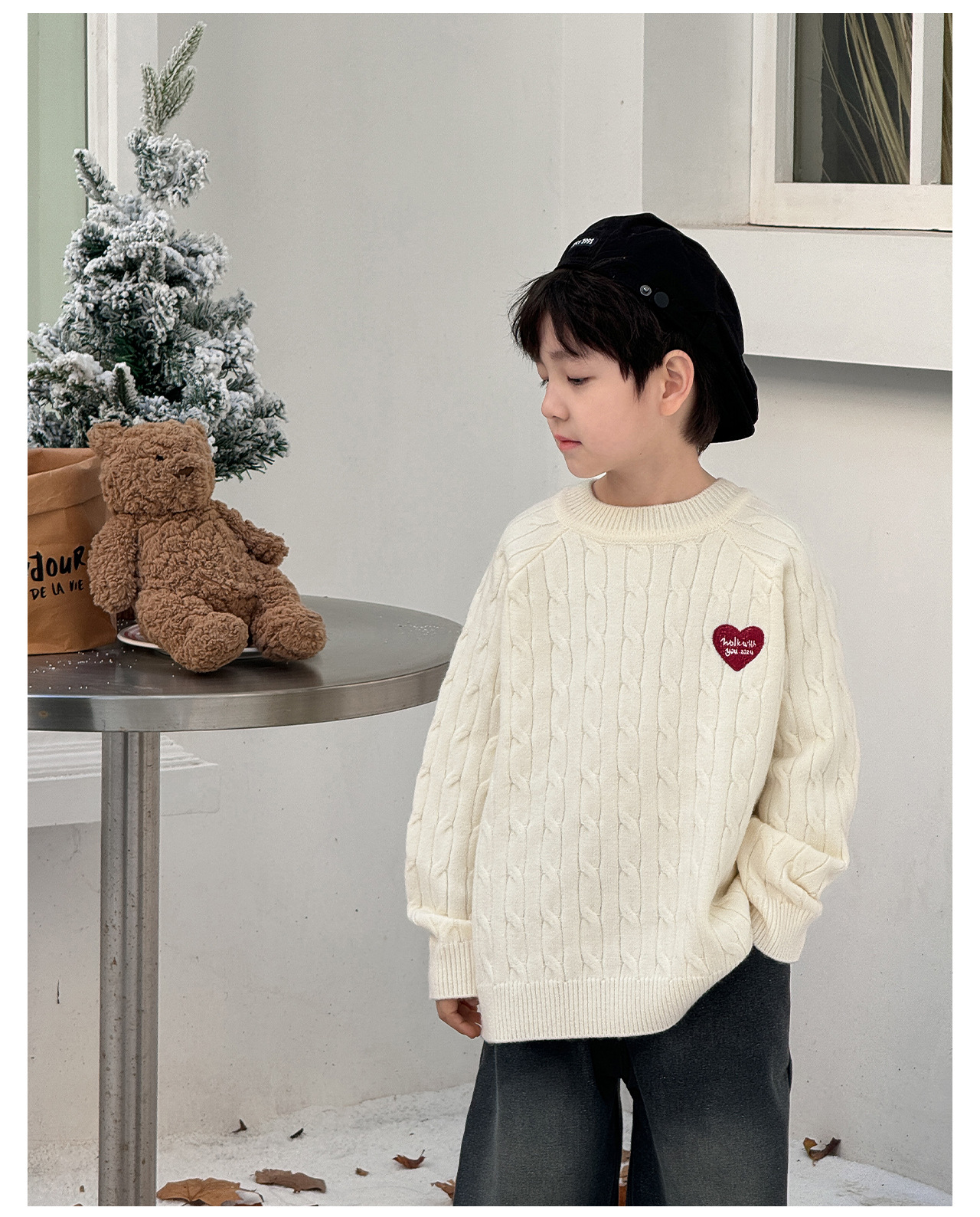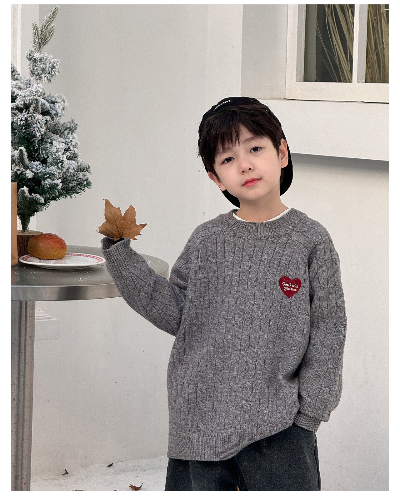 통쿠2025 어린이 겨울용 호주직물 어린이복 하트 문자 자수 니트 두꺼운 남아용 스웨터 트렌디스토어 가기