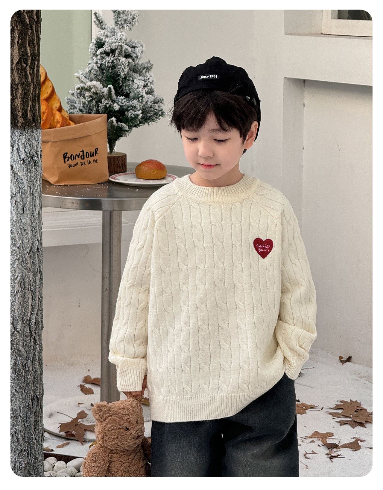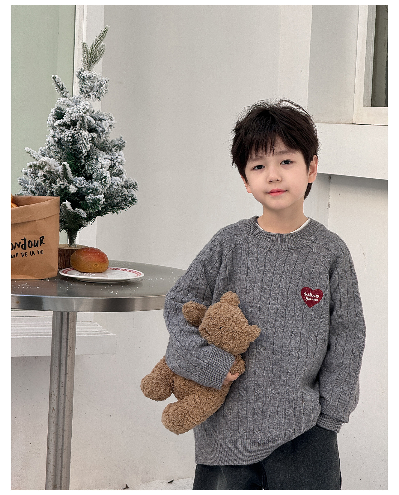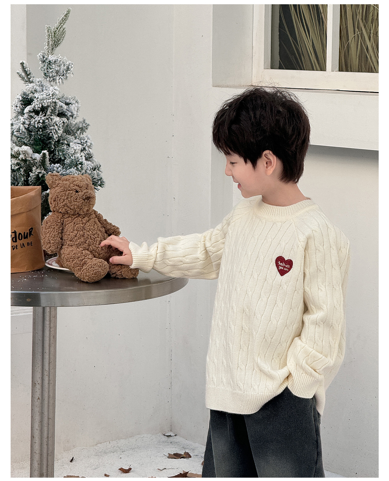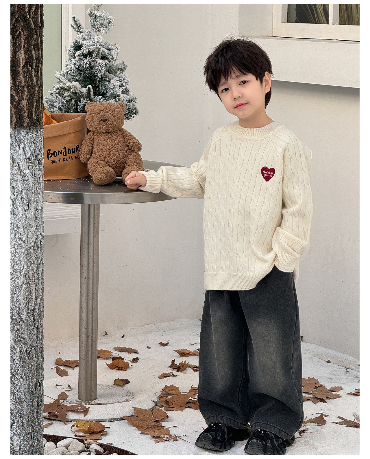 통쿠2025 어린이 겨울용 호주직물 어린이복 하트 문자 자수 니트 두꺼운 남아용 스웨터 트렌디스토어 가기