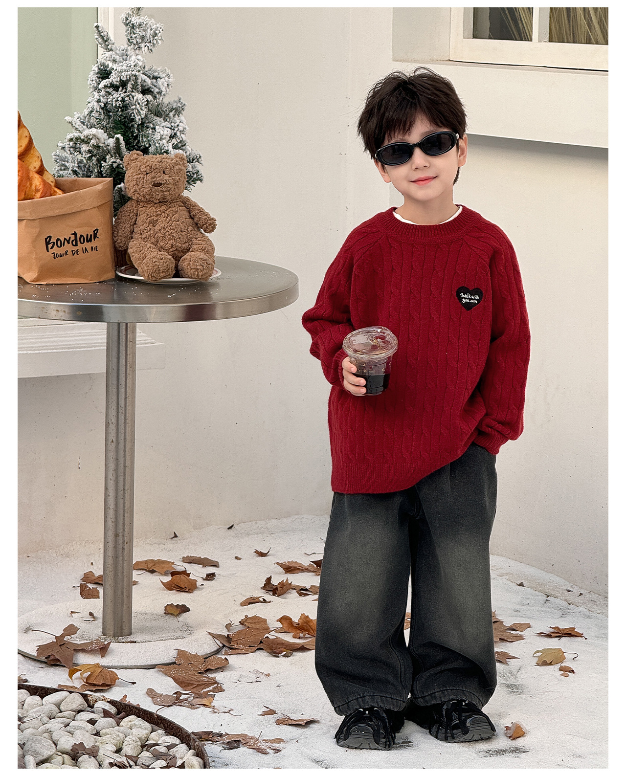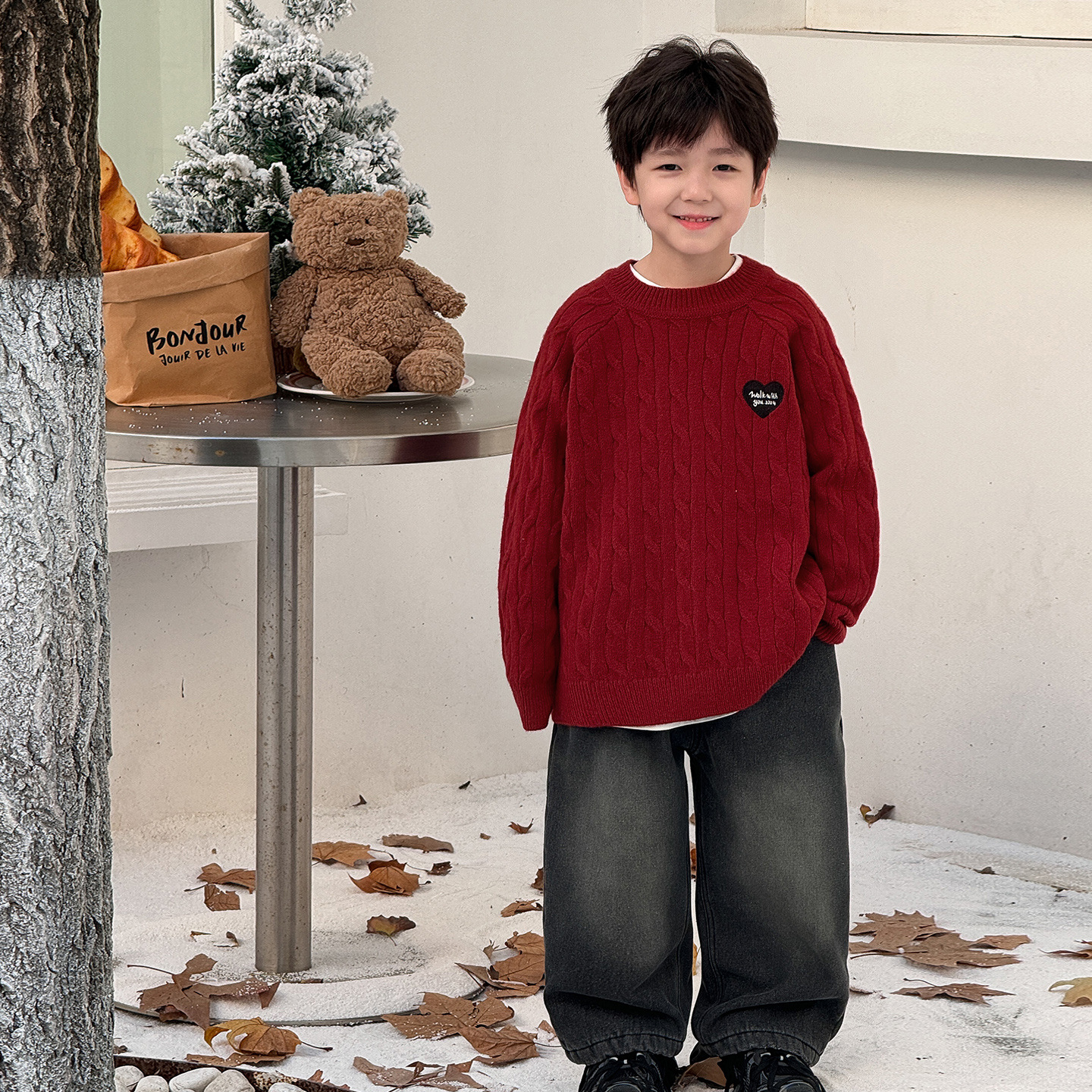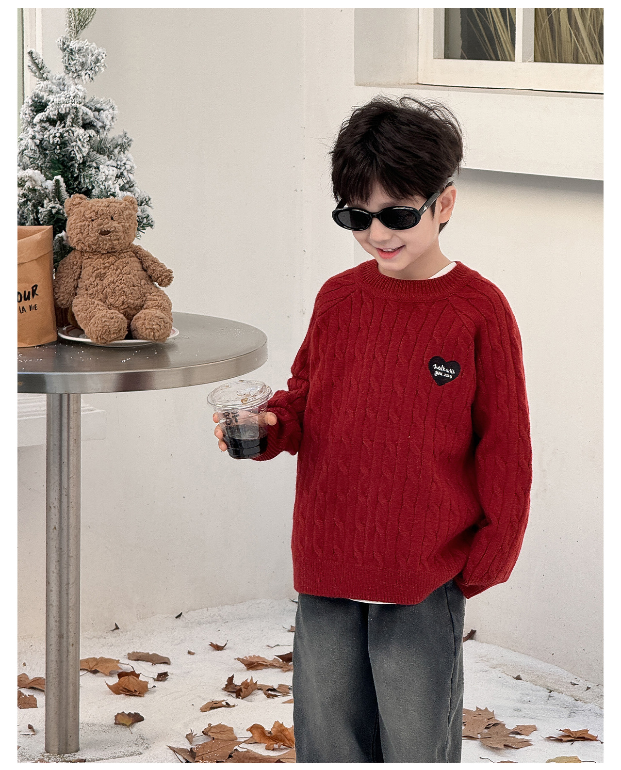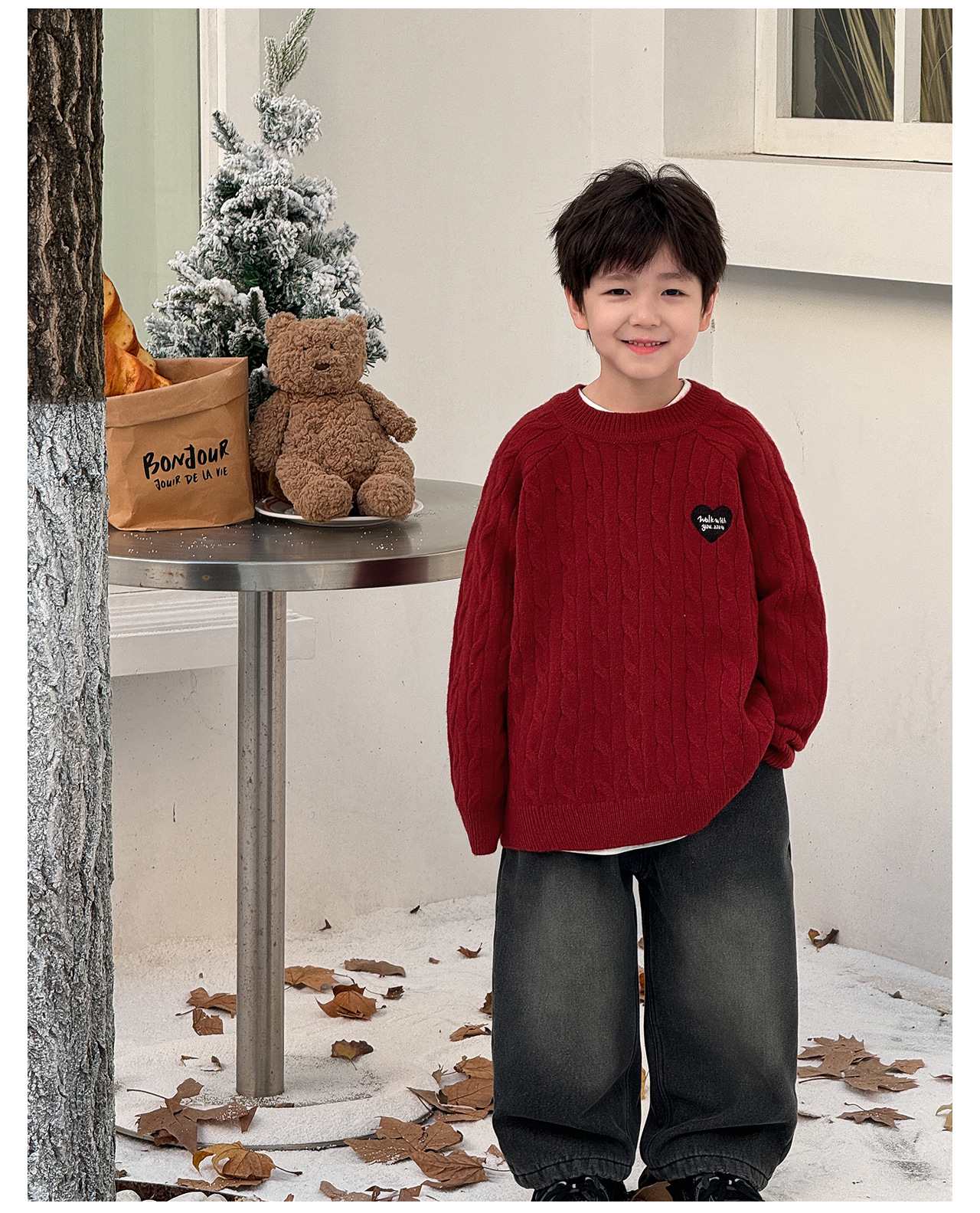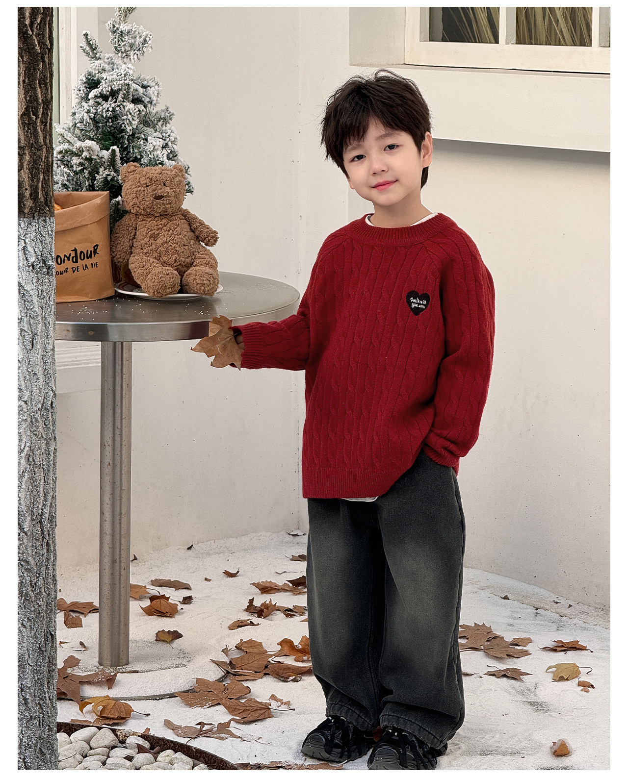 통쿠2025 어린이 겨울용 호주직물 어린이복 하트 문자 자수 니트 두꺼운 남아용 스웨터 트렌디스토어 가기