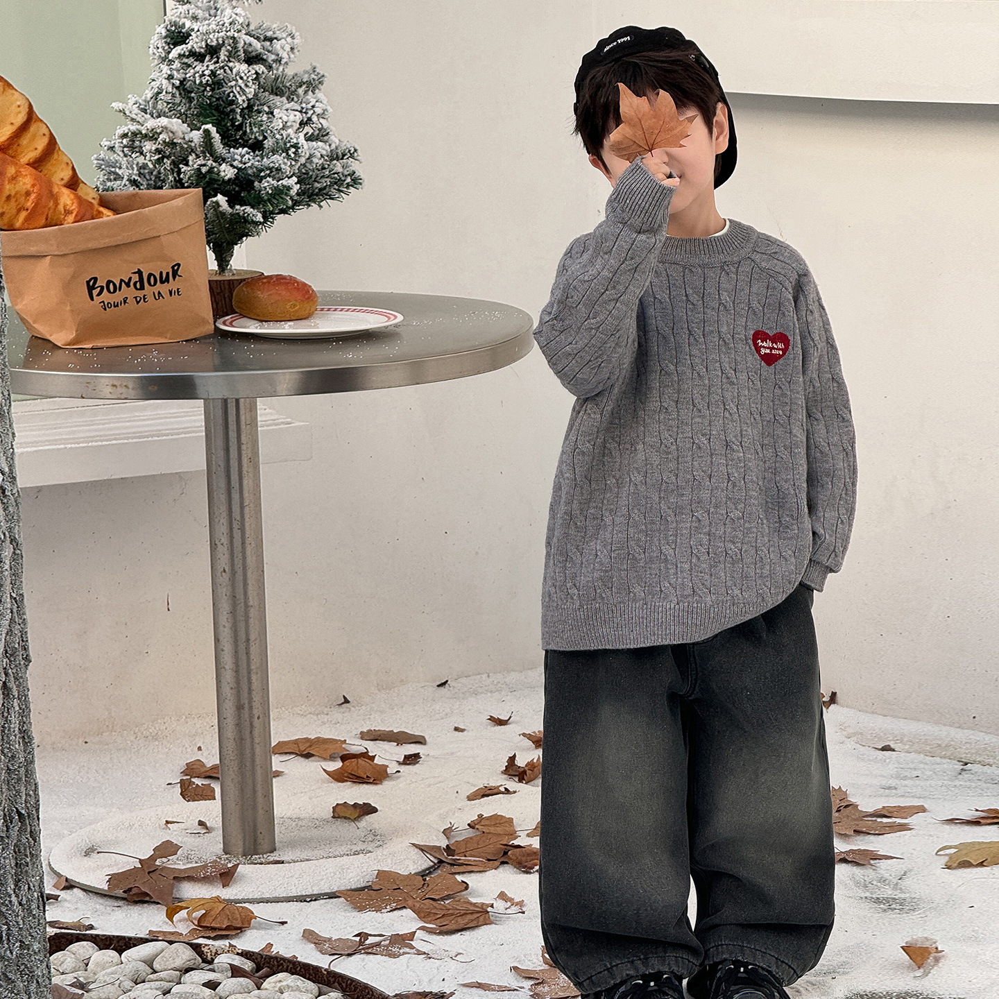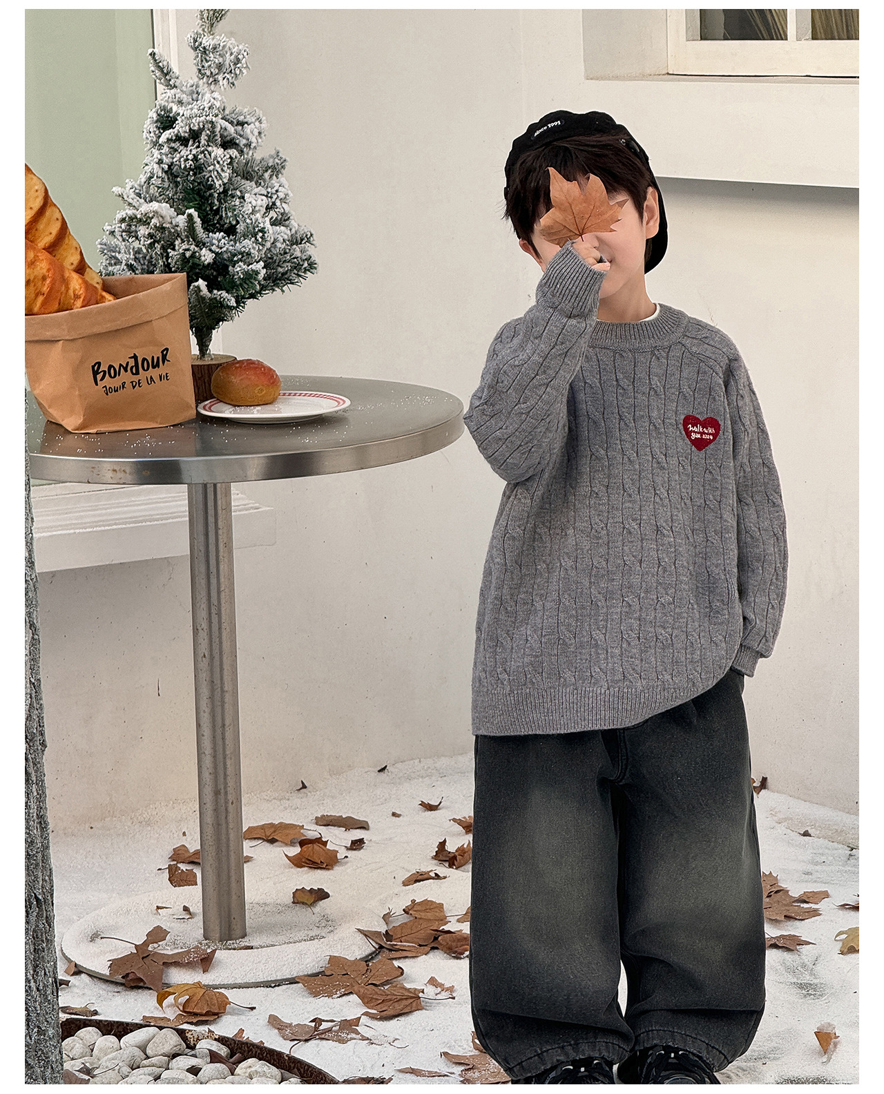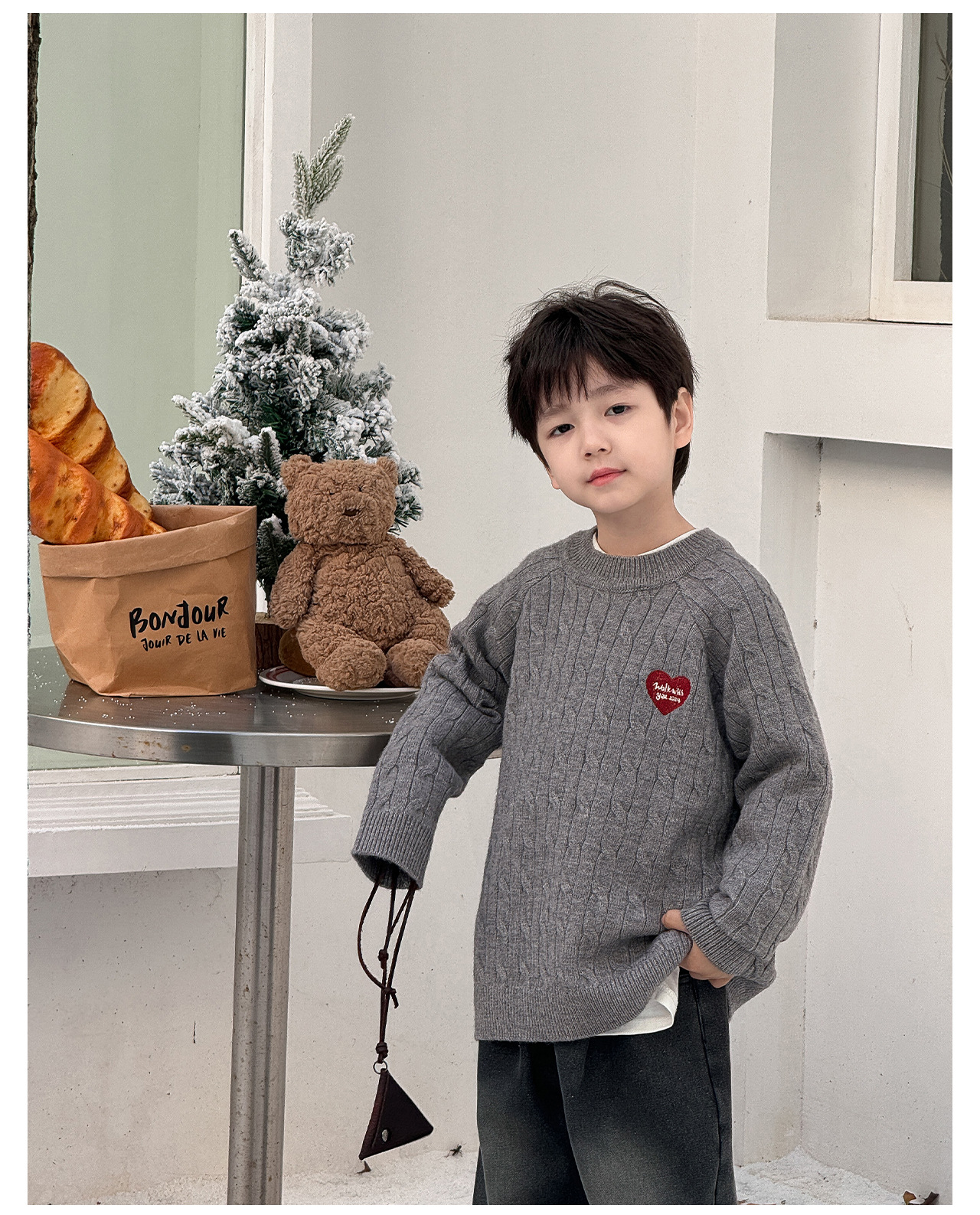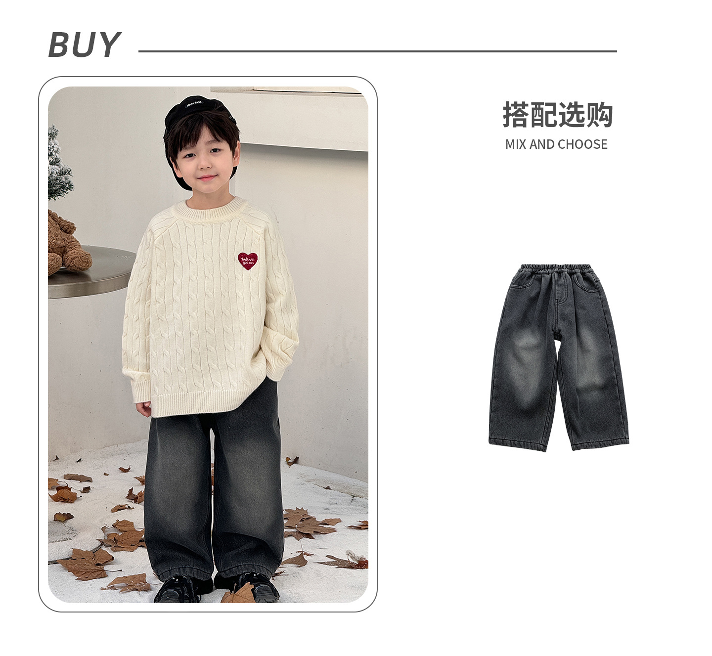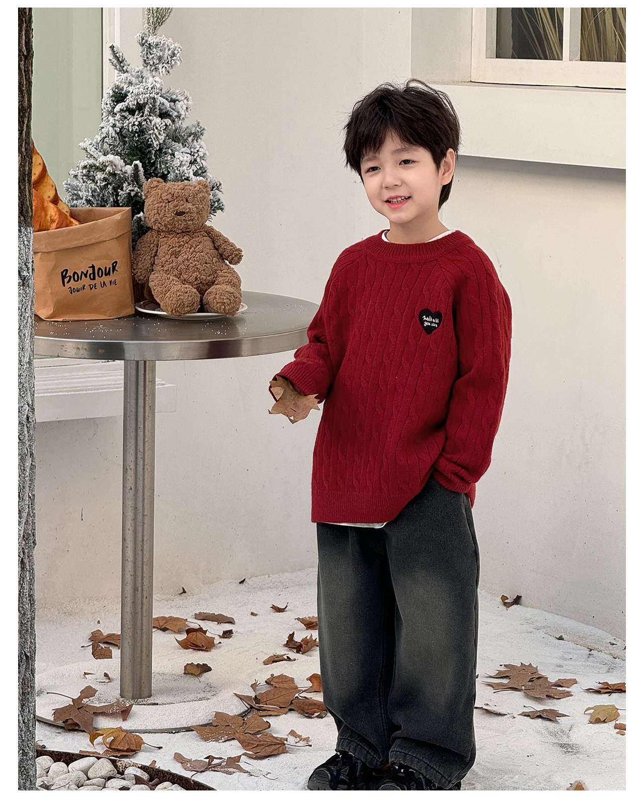 통쿠2025 어린이 겨울용 호주직물 어린이복 하트 문자 자수 니트 두꺼운 남아용 스웨터 트렌디스토어 가기