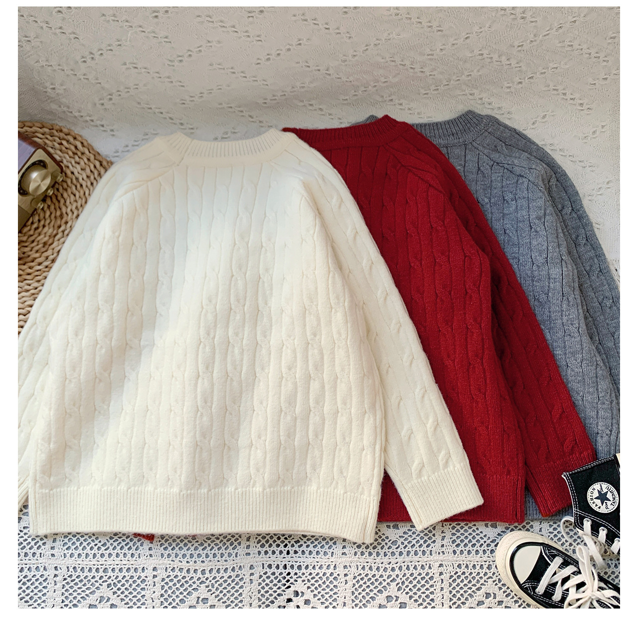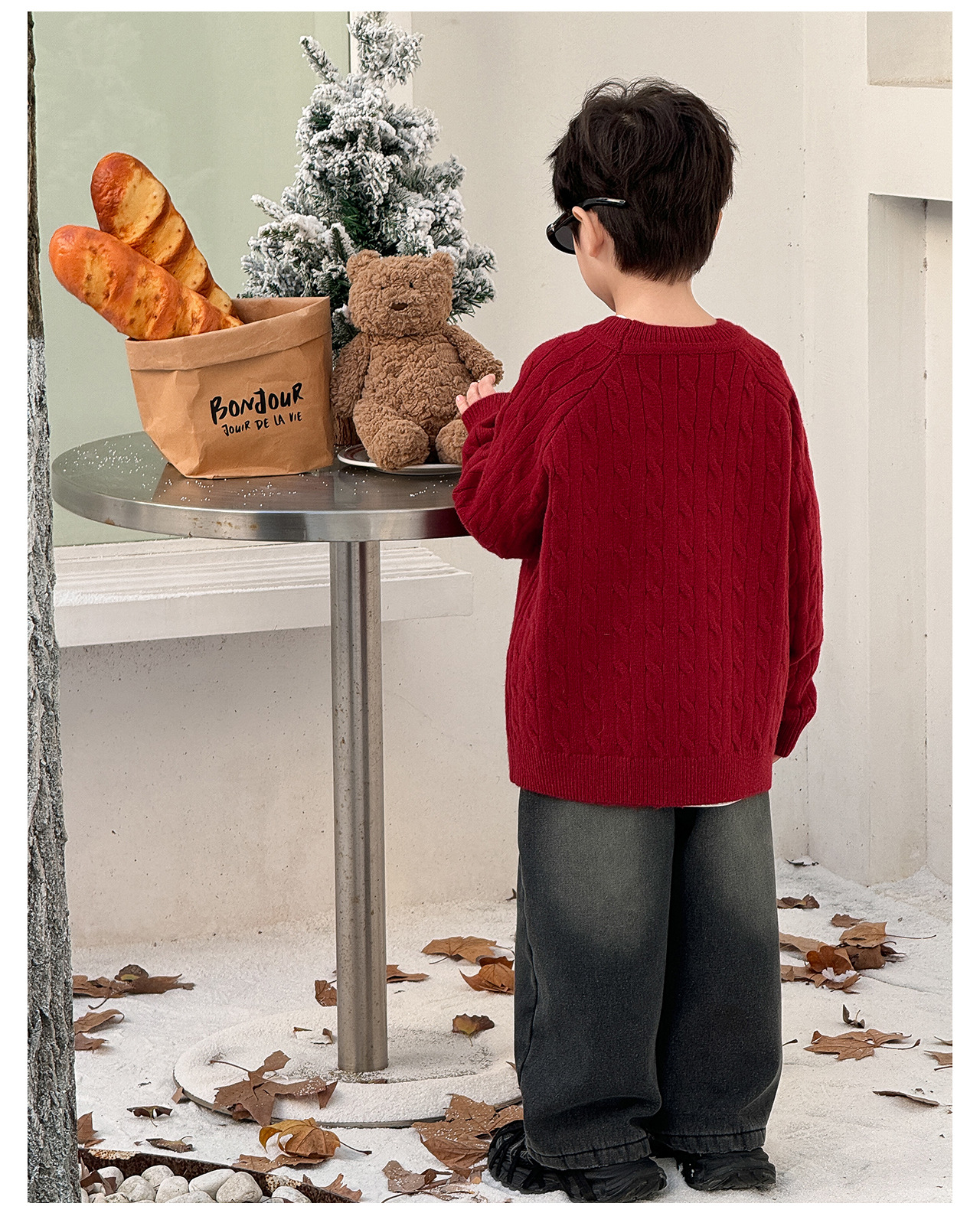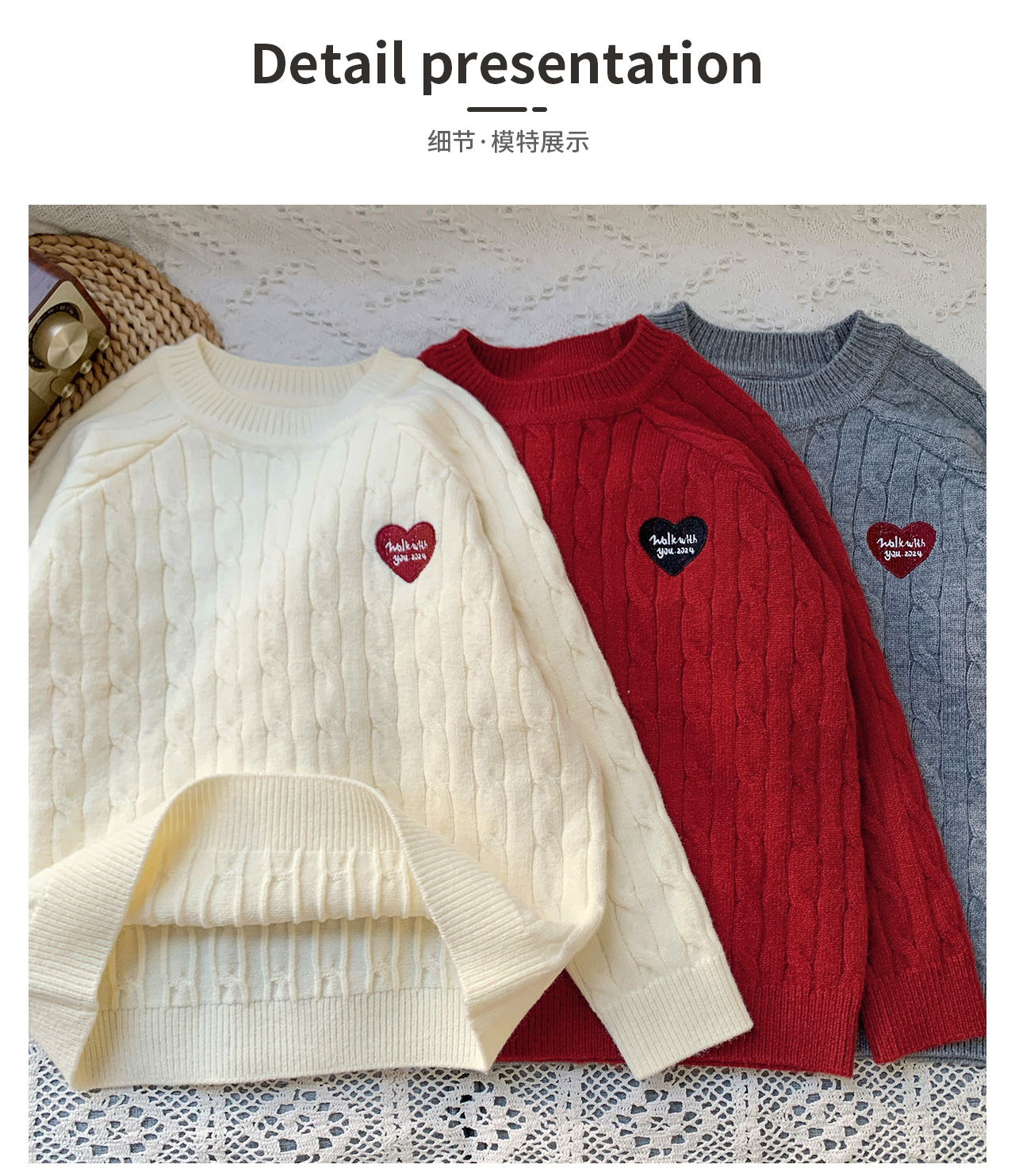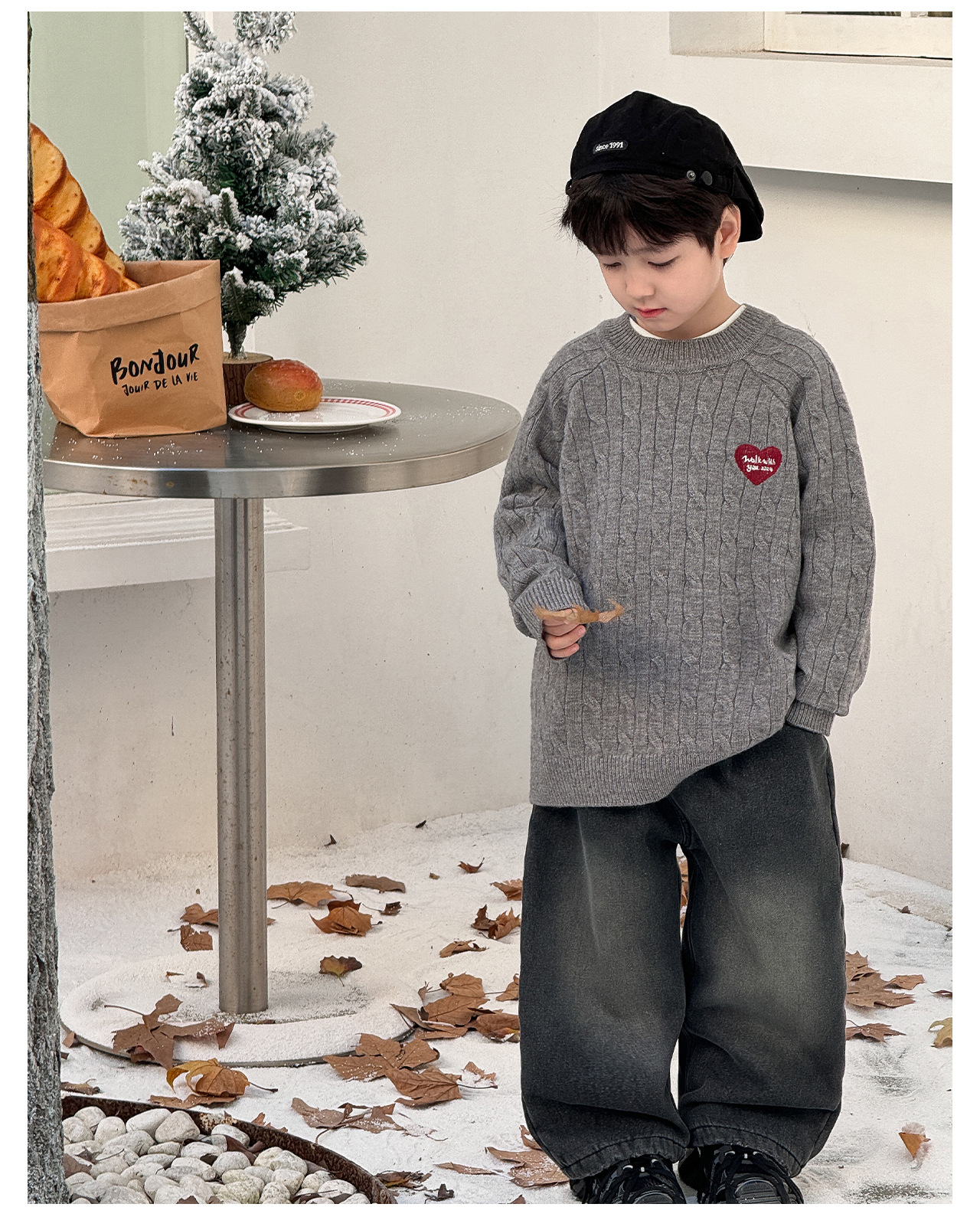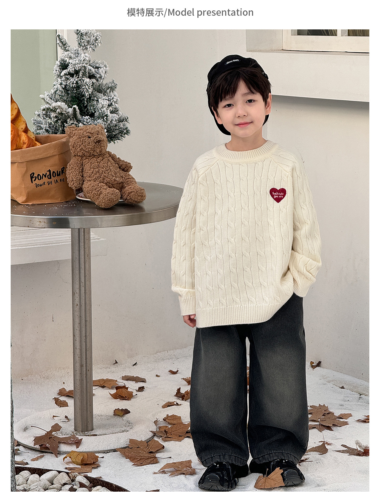 통쿠2025 어린이 겨울용 호주직물 어린이복 하트 문자 자수 니트 두꺼운 남아용 스웨터 트렌디스토어 가기