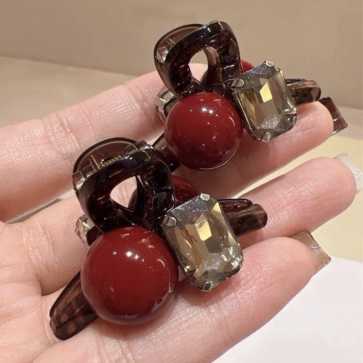 기질 레드 비드 그랩 클립 고급 센스 헤어핀 프론트 뱅 공주 클립 사이드 클립 하프 타이 헤어 헤어핀