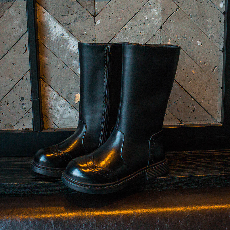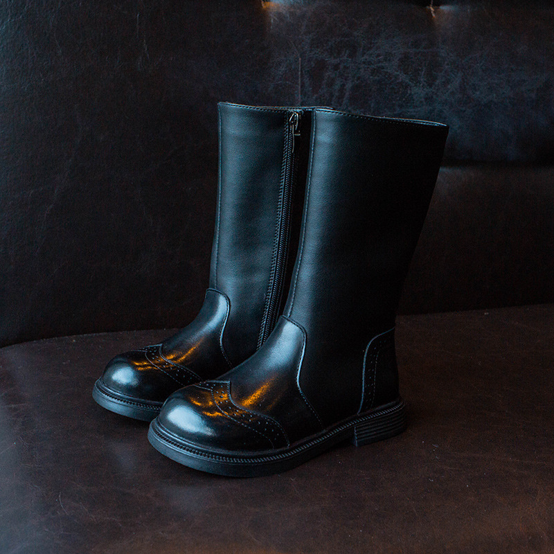 소녀 기사 부츠 2024 가을 겨울 아기 소녀 기모 따뜻한 코튼 부츠 간단한 레트로 마틴 부츠 롱 부츠