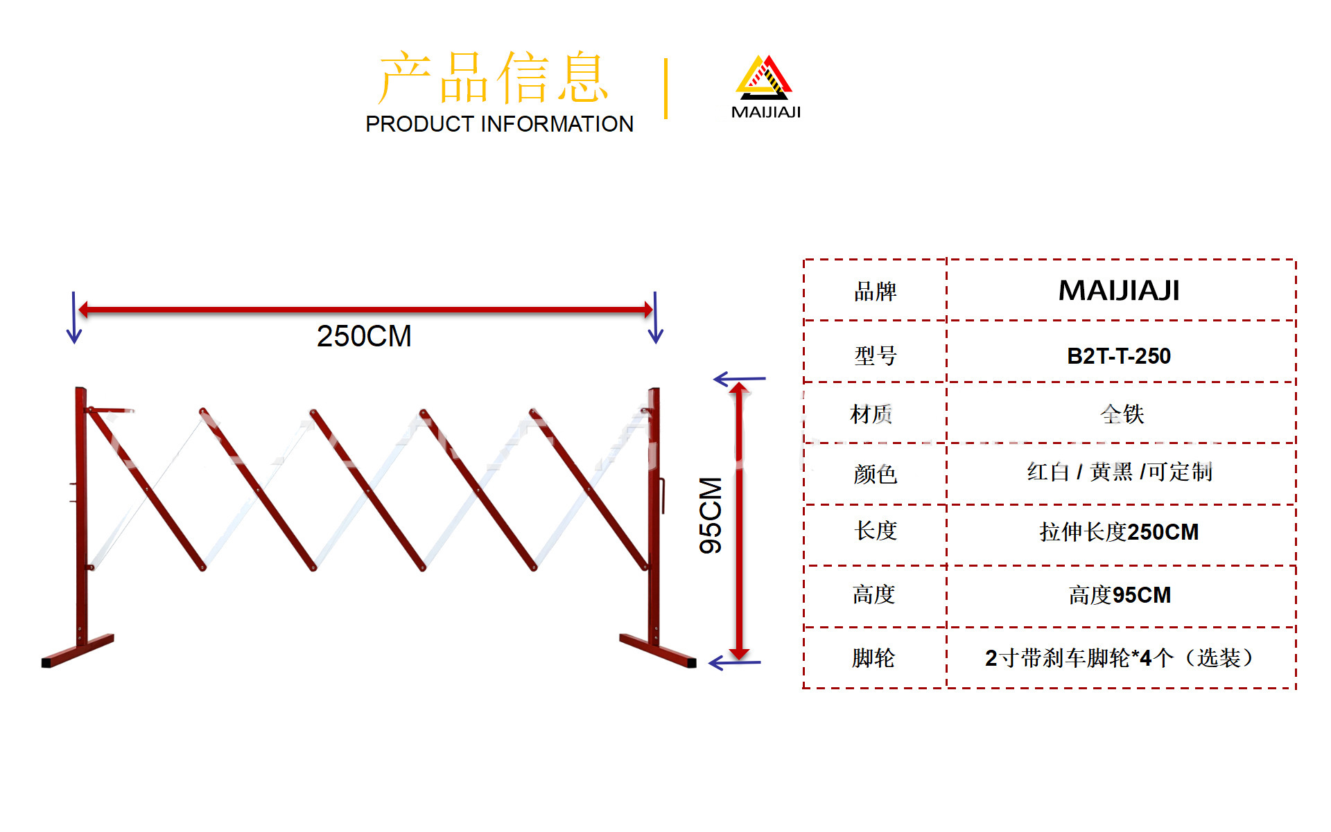 • 250x95cm 빨간색과 흰색 바퀴, 전체 철 가드레일