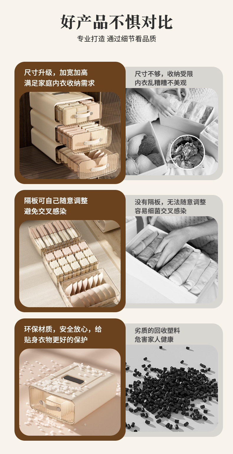 속옷 및 팬티 보관 상자 가정용 옷장 양말 옷장 옷 서랍 유형 파티션 마감 상자 3 대 1 유물스토어 가기