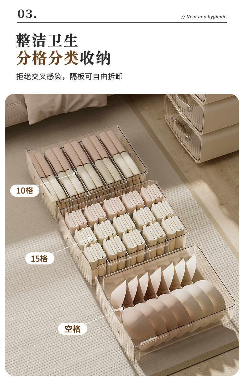 속옷 및 팬티 보관 상자 가정용 옷장 양말 옷장 옷 서랍 유형 파티션 마감 상자 3 대 1 유물