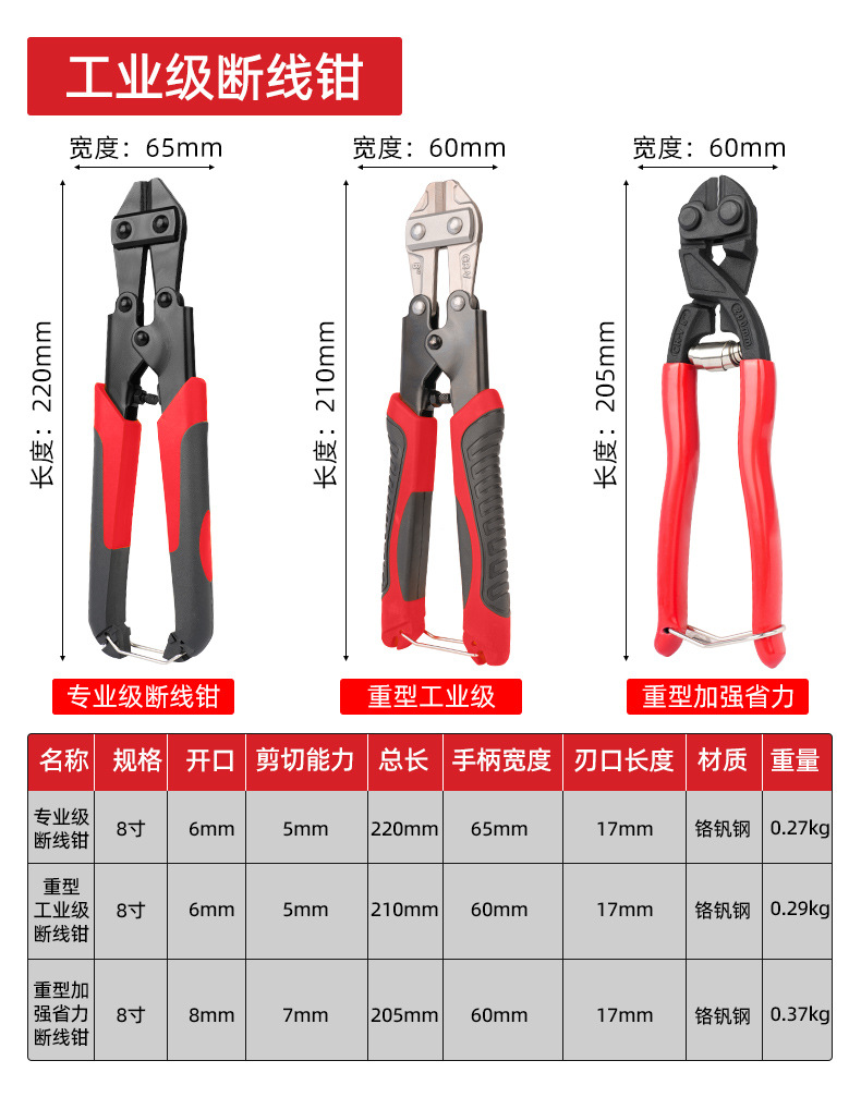 • 빨간색 손잡이 산업용 등급 와이어 로프 가위 + 무료 장갑