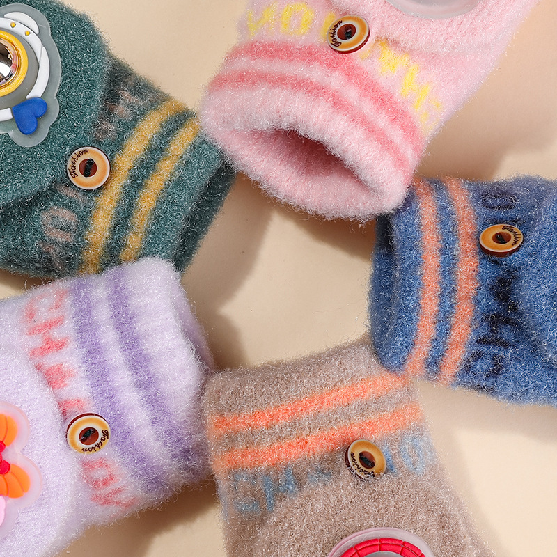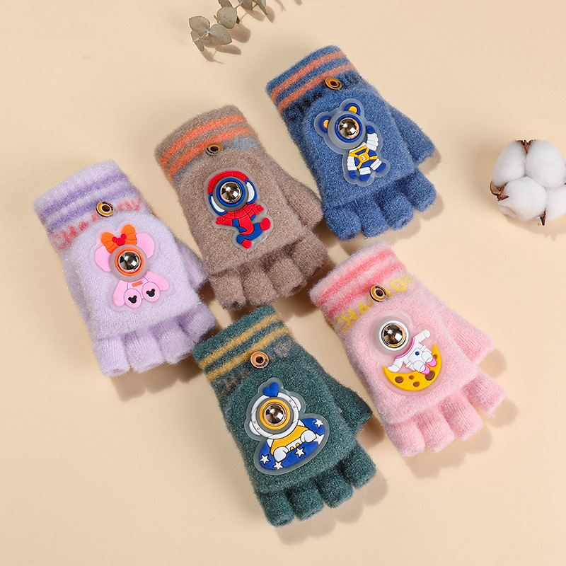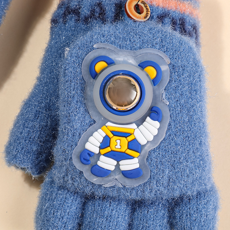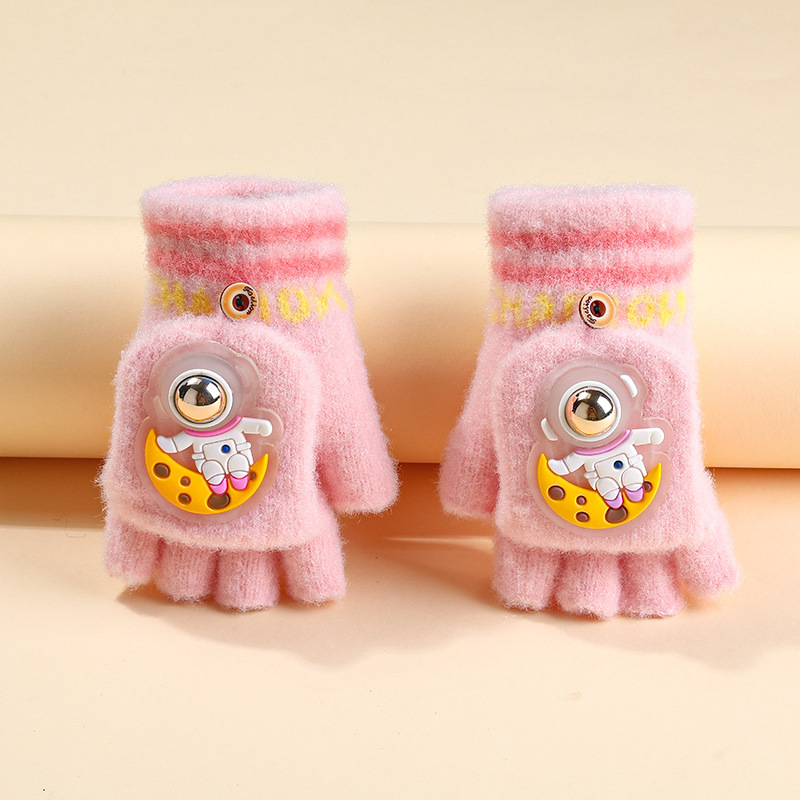 어린이용 장갑 가을, 겨울 남아, 여아용 6-10세 우주비행사 반손가락 플립형 장갑 보온, 필기, 방한, 발광 기능 성인용