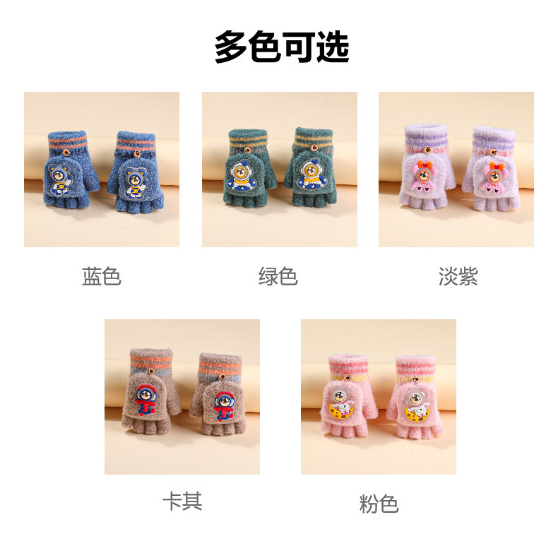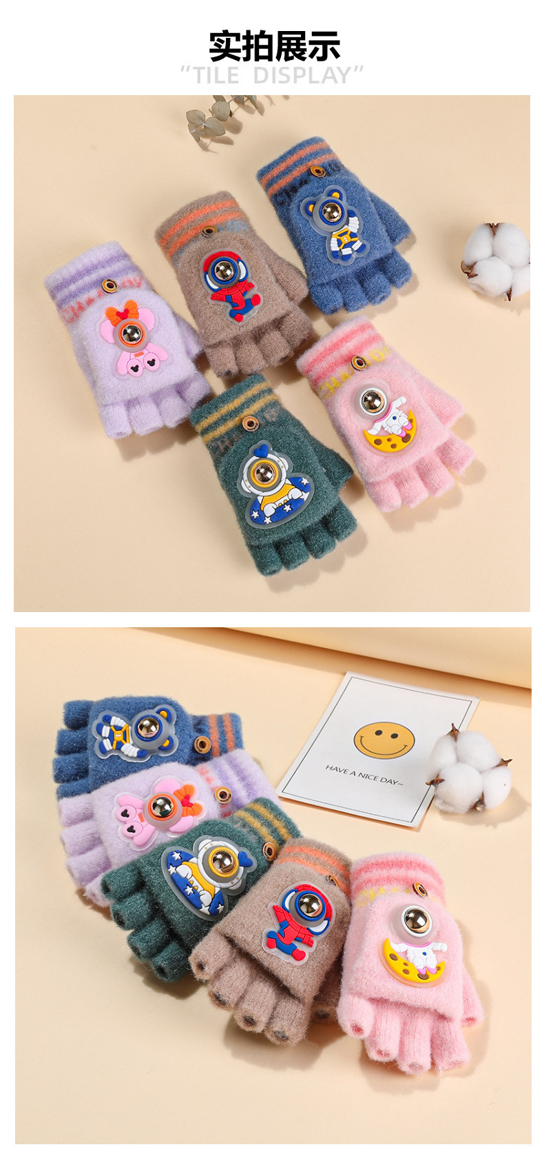 어린이용 장갑 가을, 겨울 남아, 여아용 6-10세 우주비행사 반손가락 플립형 장갑 보온, 필기, 방한, 발광 기능 성인용스토어 가기