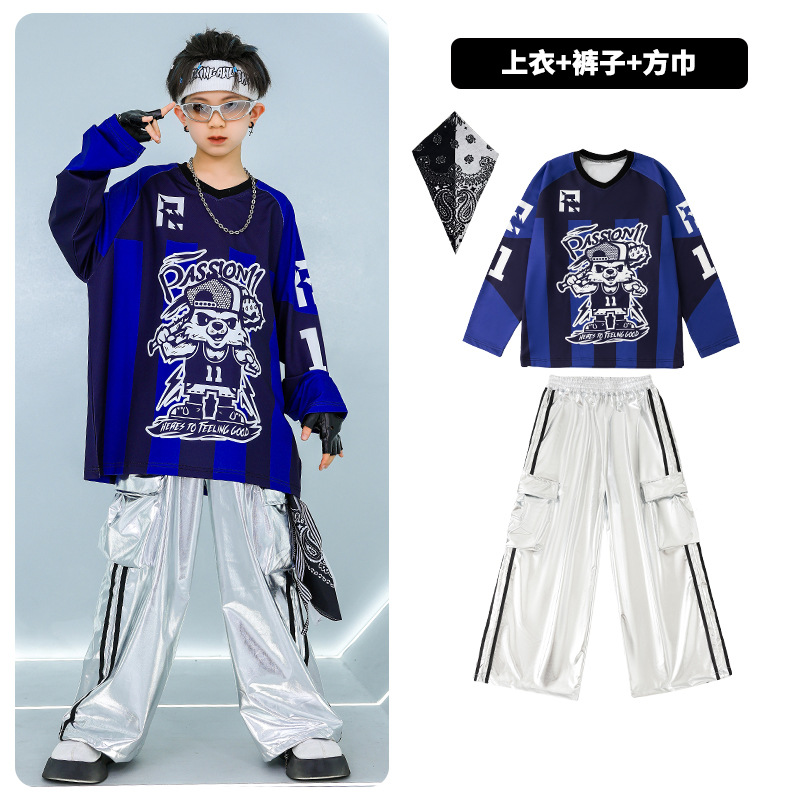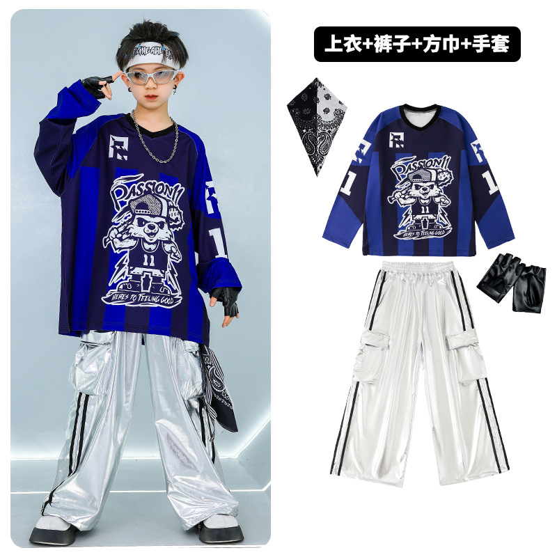 힙합 어린이 패션 의류 소년 힙합 베어 세트 Hiphop Girls 쿨 잘 생긴 패션 의류 어린이 설날 공연 옷스토어 가기