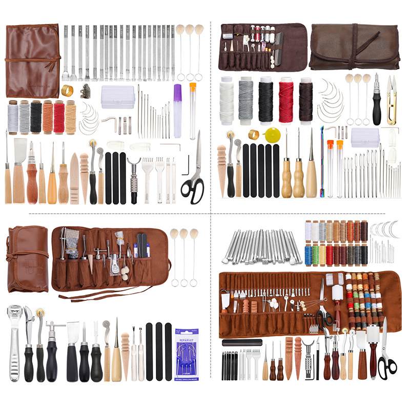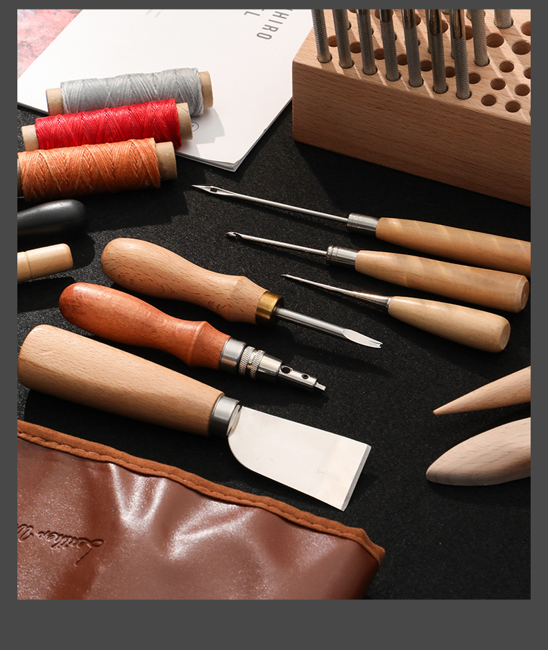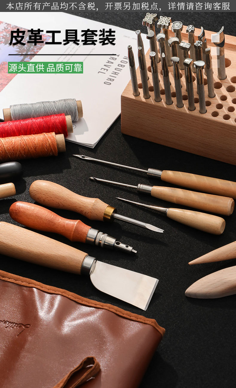 국경 간 뜨거운 판매 수제 가죽 봉제 전체 도구 세트 DIY 가죽 가죽 예술 세트 초보 가죽 예술 도구 세트