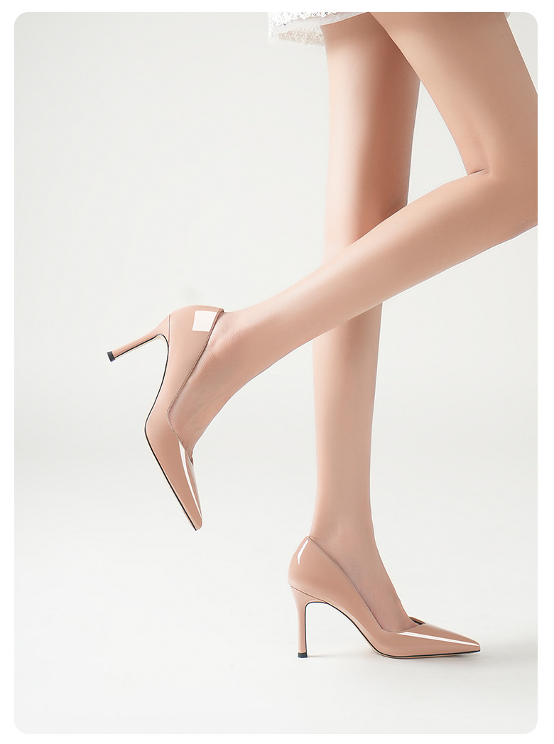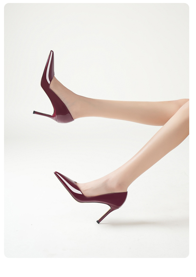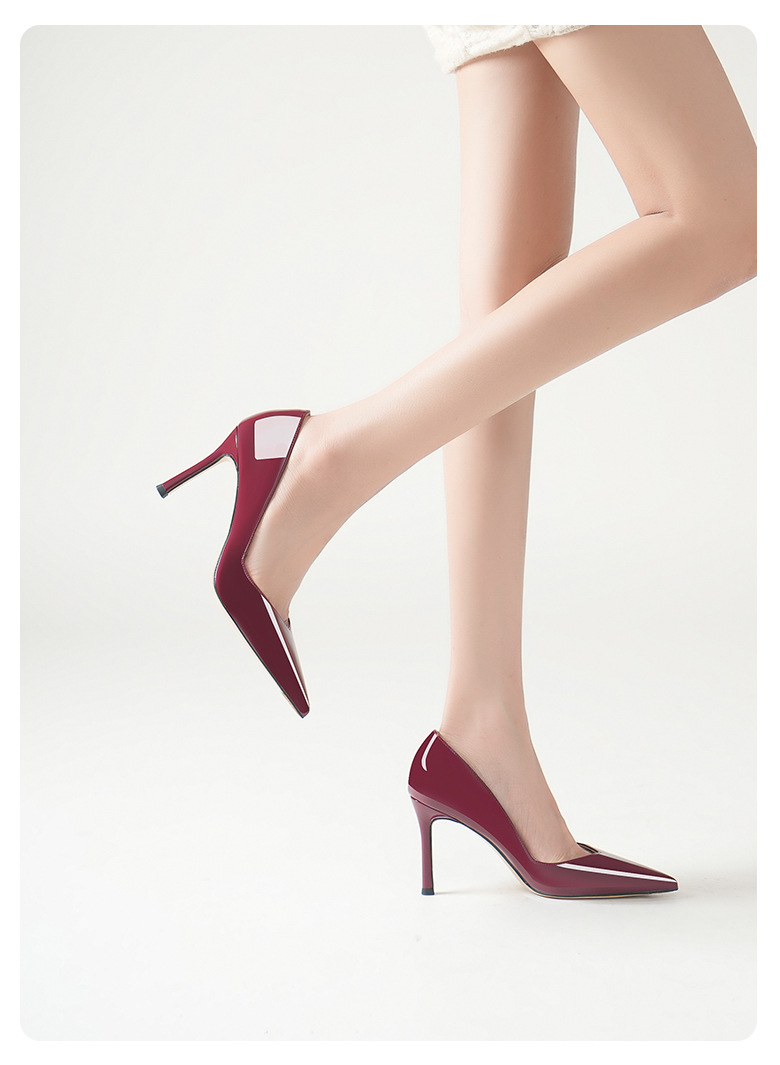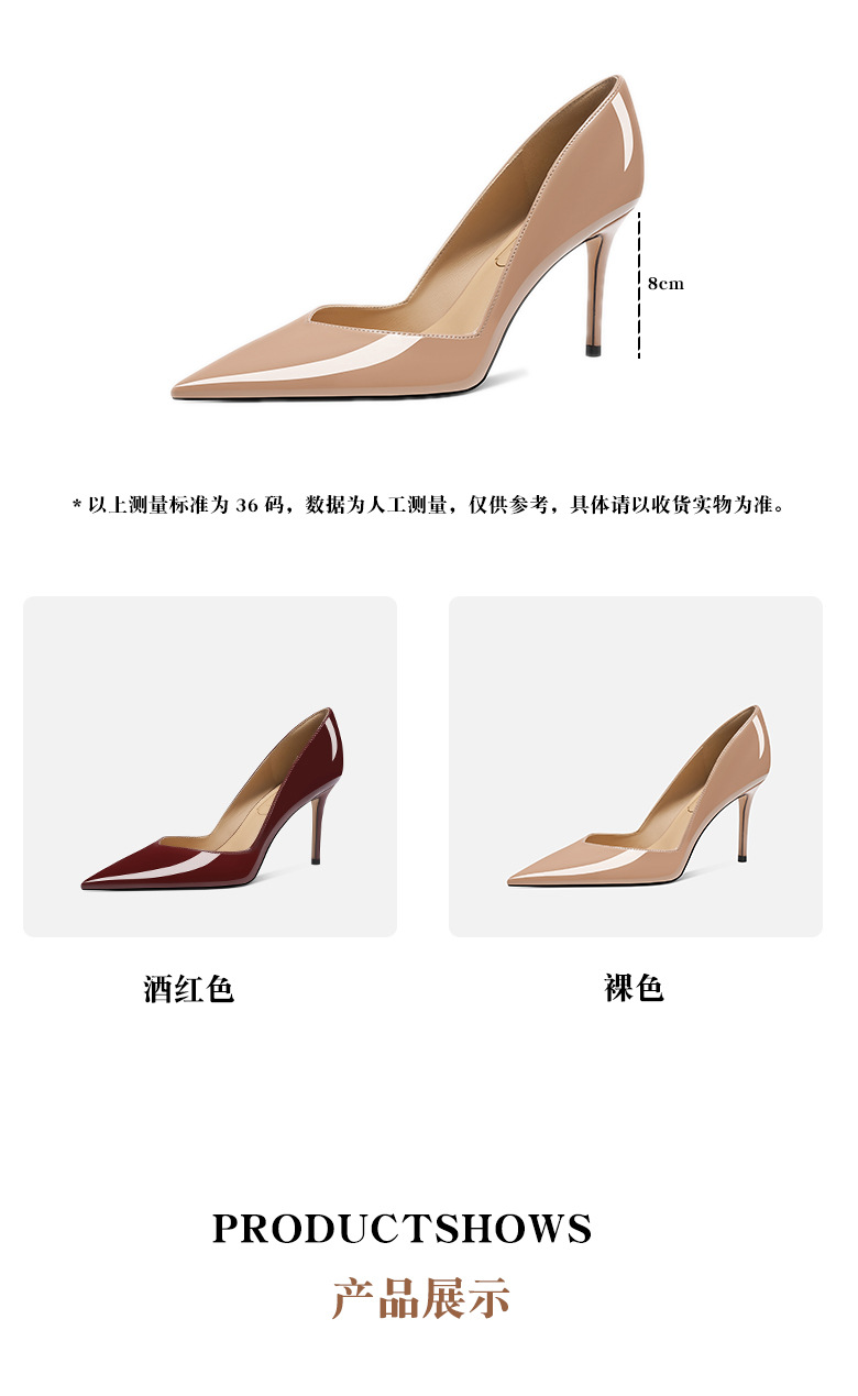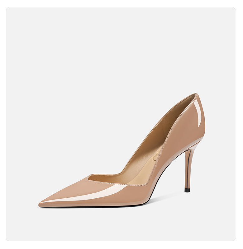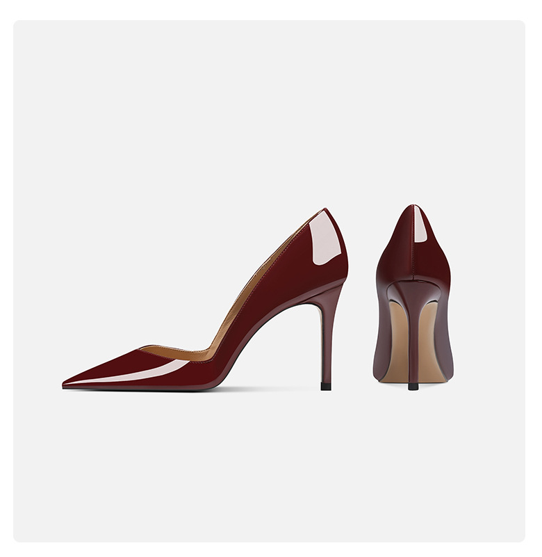 708-K1 특허 가죽 반짝 뾰족한 발가락 하이힐 양가죽 여성 싱글 신발 우아한 연회 하이힐 얕은 탑 스틸레토 힐 여성용 힐